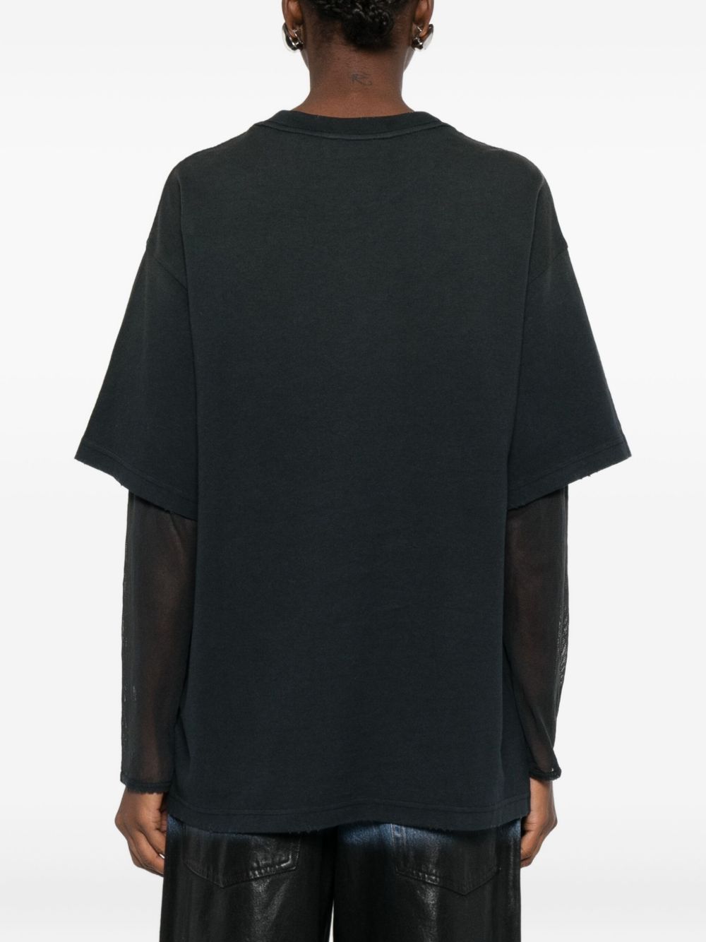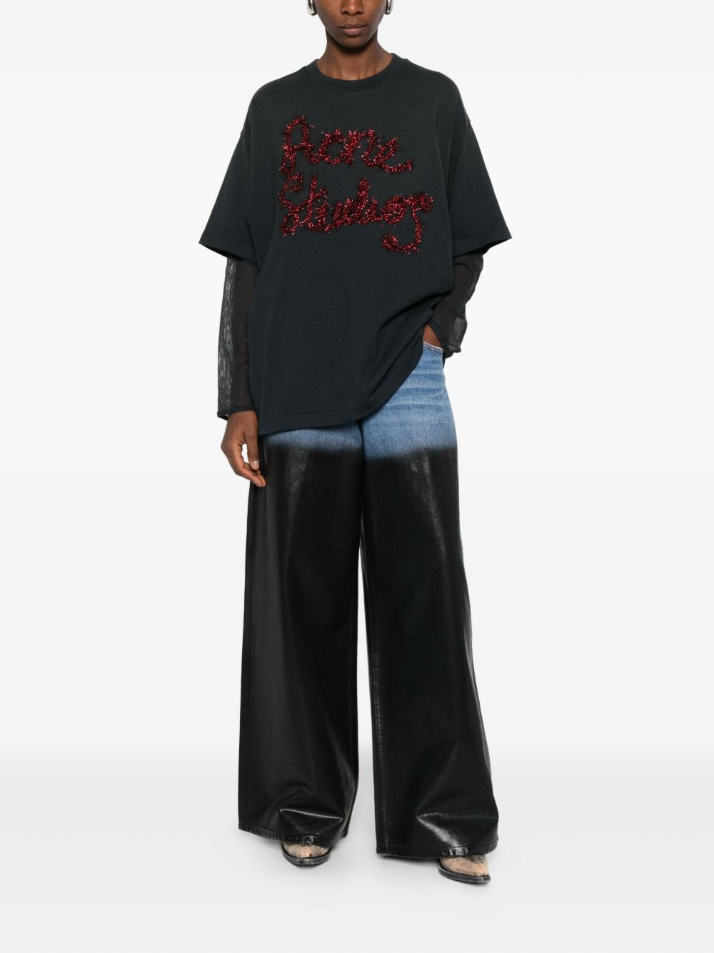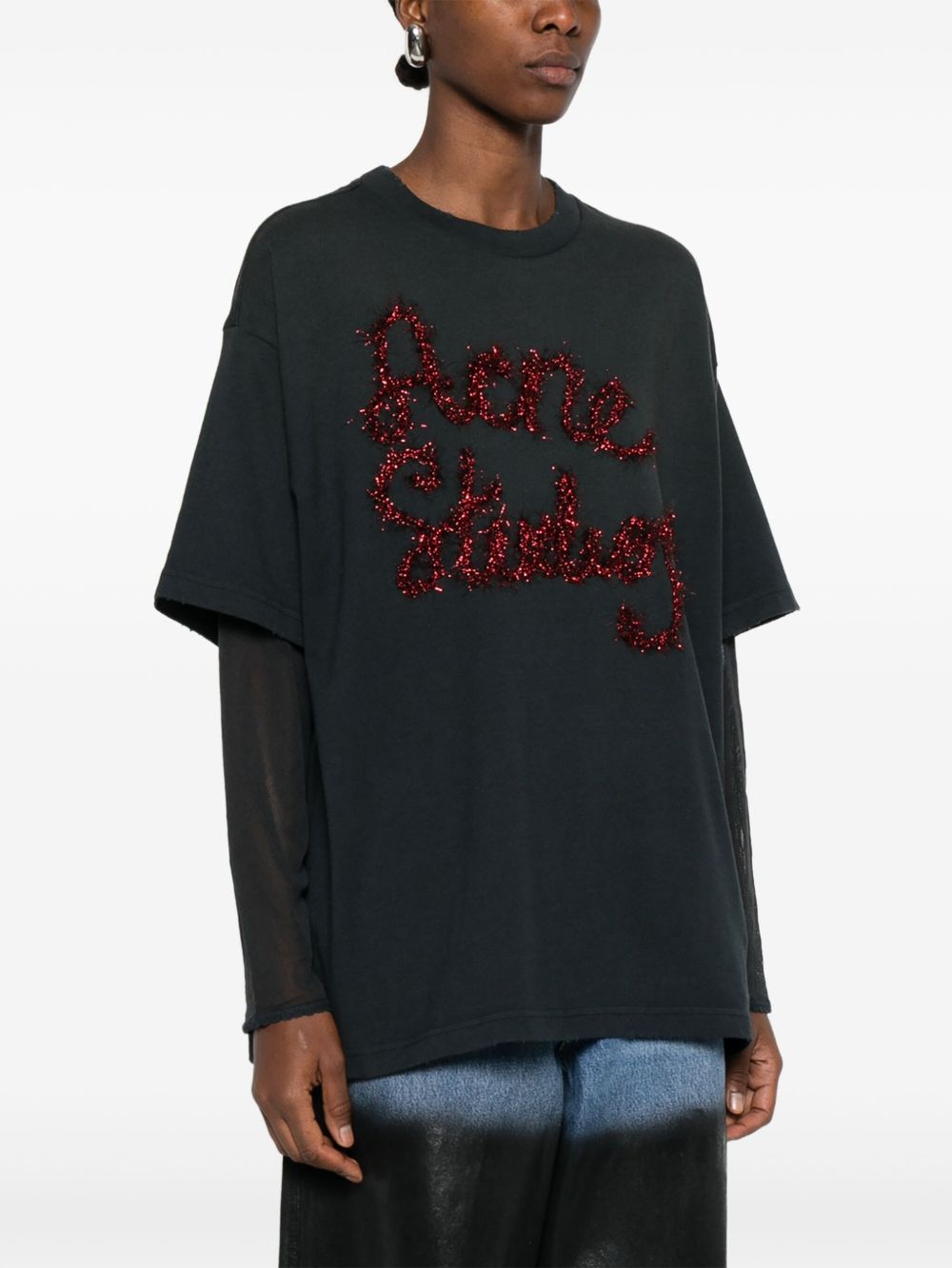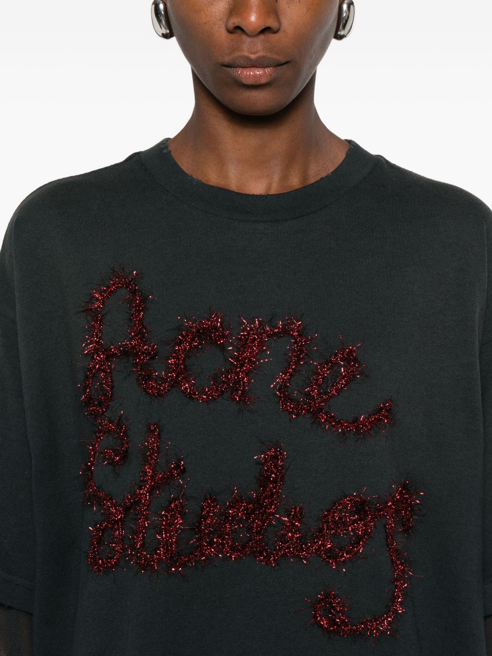 Layered Logo anthracite T-shirt by Acne Studios with crowns, crew neck, front embroidery, and straight hem.