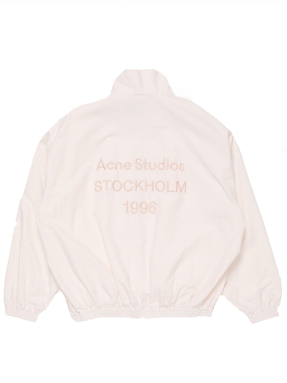 White nylon jacket by Acne Studios with Acne Studios logo embroidery on the back, relaxed fit, and below-the-waist length.