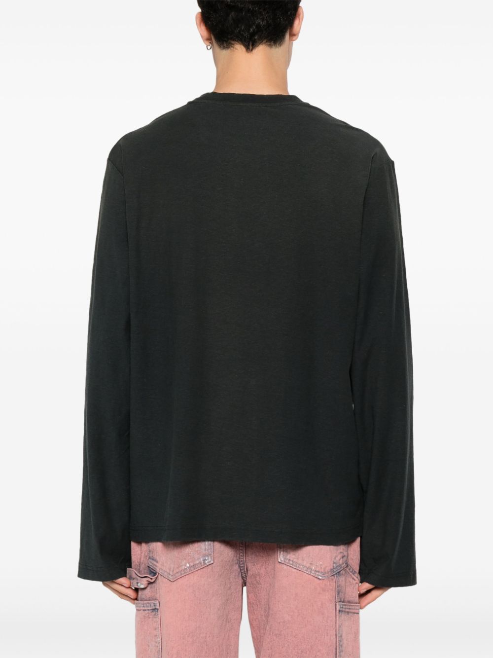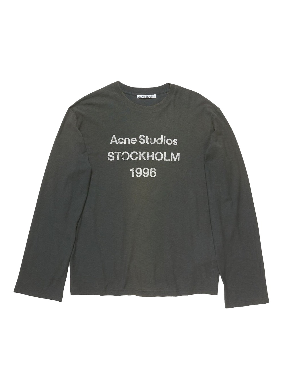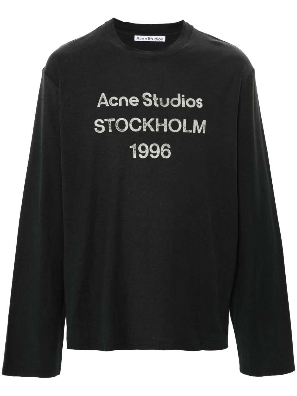 Black logo T-shirt by Acne Studios in cotton with a crew neck, front print, and long sleeves.