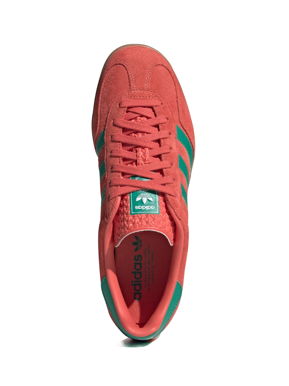 Pink suede Gazelle Indoor W trainers by Adidas with round toe, a lace-up front fastening and a contrasting flat rubber sole.