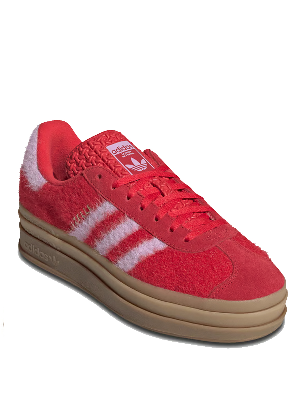 Red Gazelle Bold sneakers by Adidas in suede with lace-up closure, textured tongue, 3-Stripes detail on the sides, logo on the back, and contrasting rubber sole.