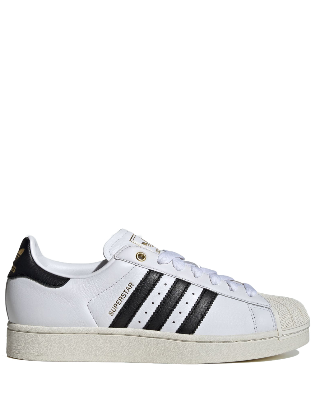 Adidas Superstar II black and white leather sneakers with round toe, contrasting inserts, side logo, and rubber sole.
