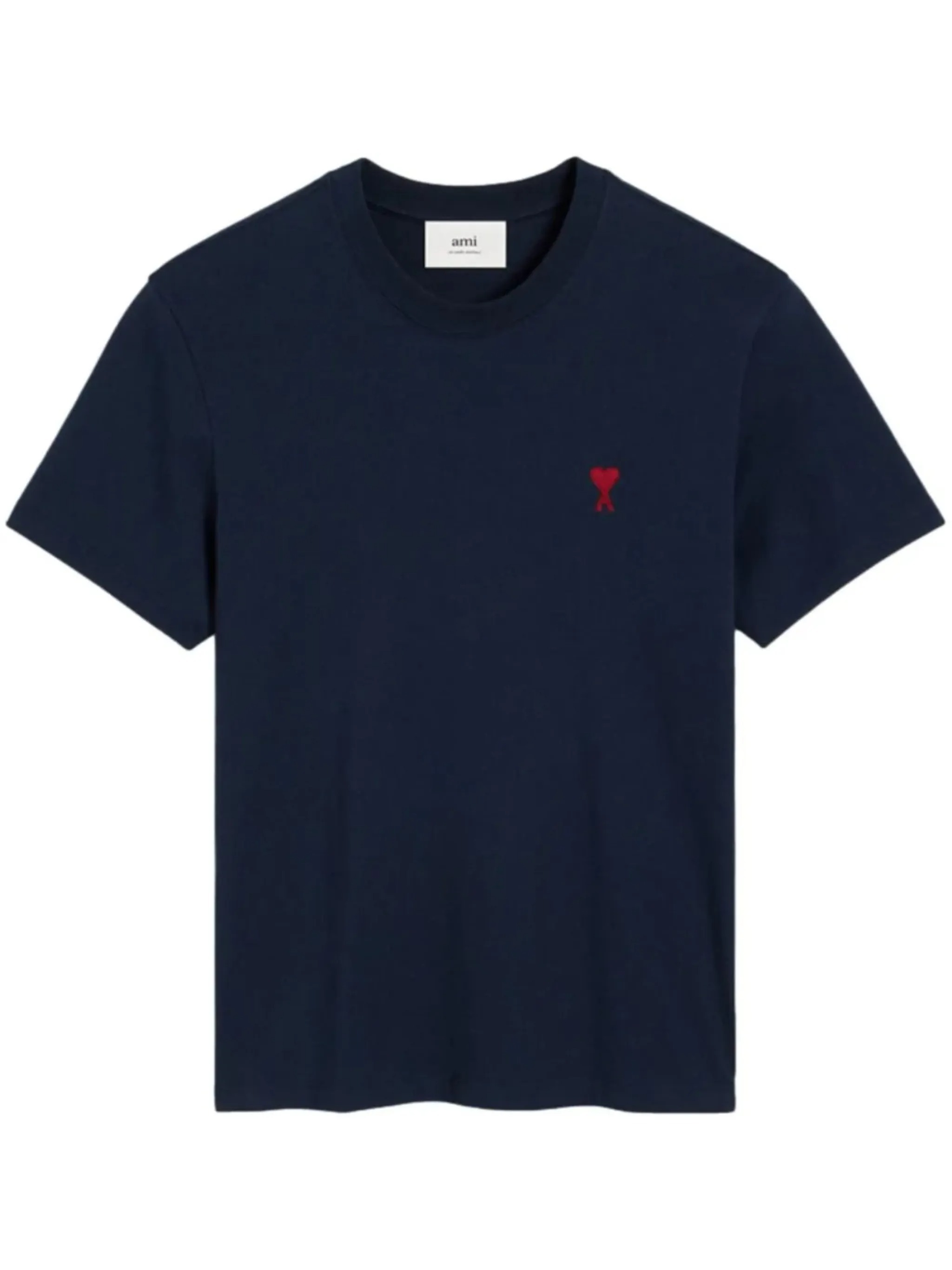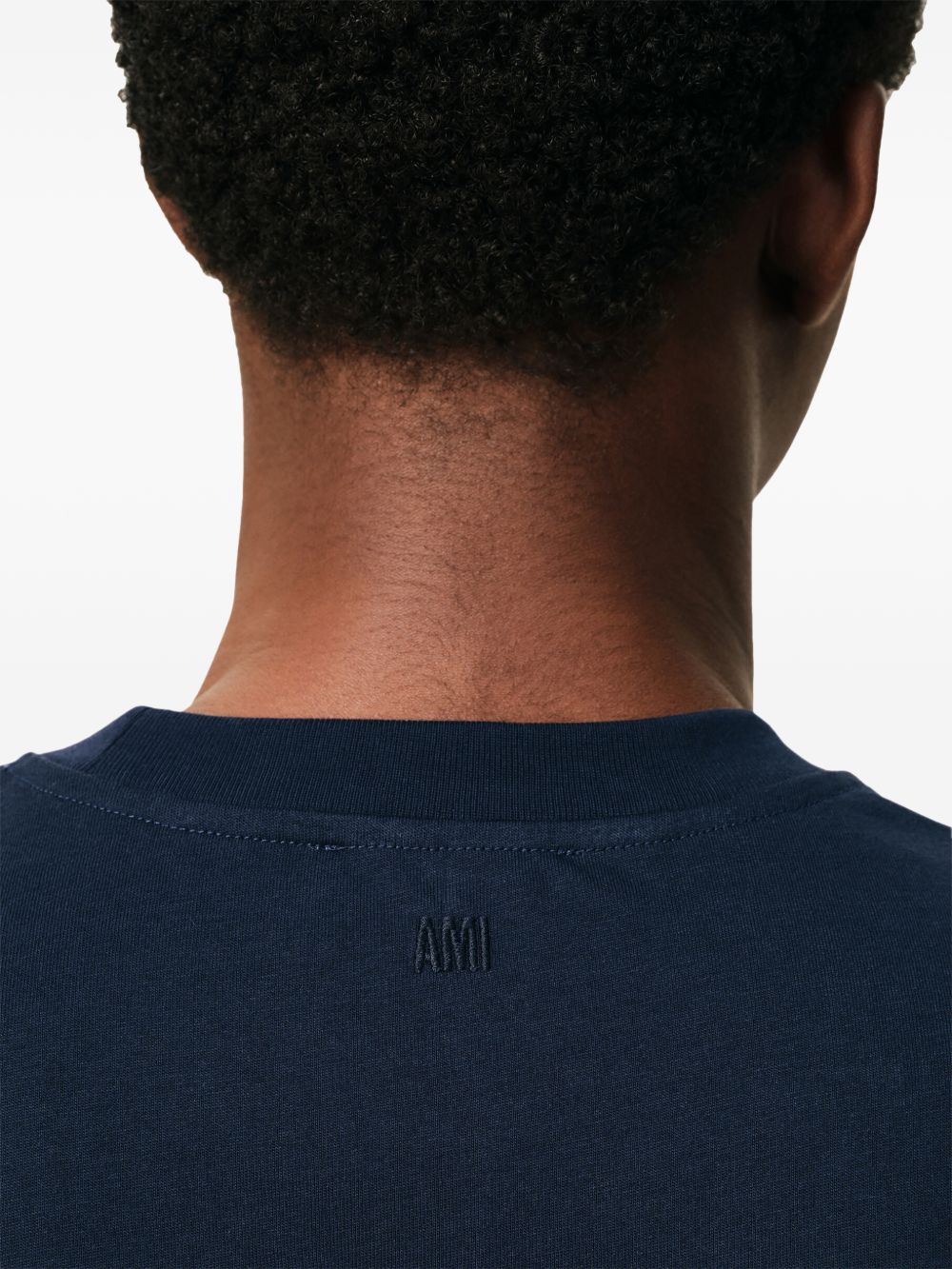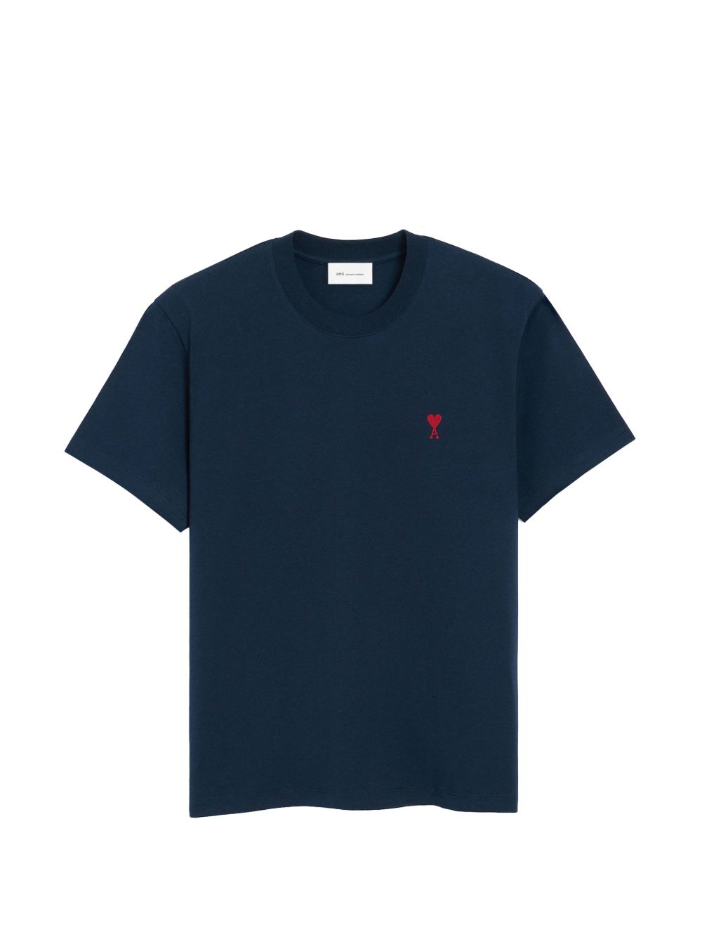 Blue "Ami de Coeur" T-shirt by Ami Paris, made of cotton, with a crew neck, a contrasting logo on the chest, and a straight hem.
