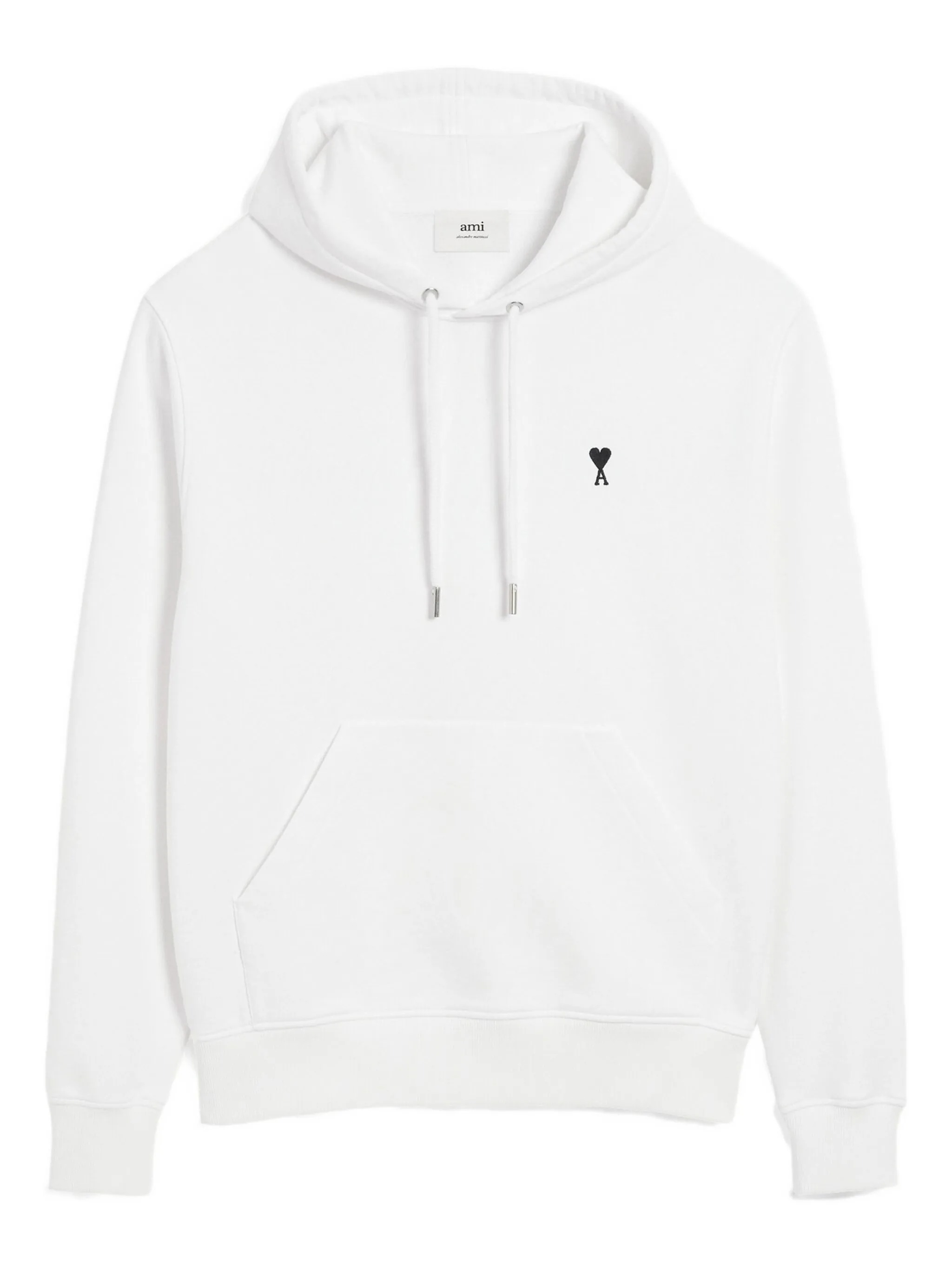 White ADC sweatshirt by Ami Paris in cotton with drawstring hood, long sleeves, embroidery on the chest, kangaroo pocket, and straight hem.