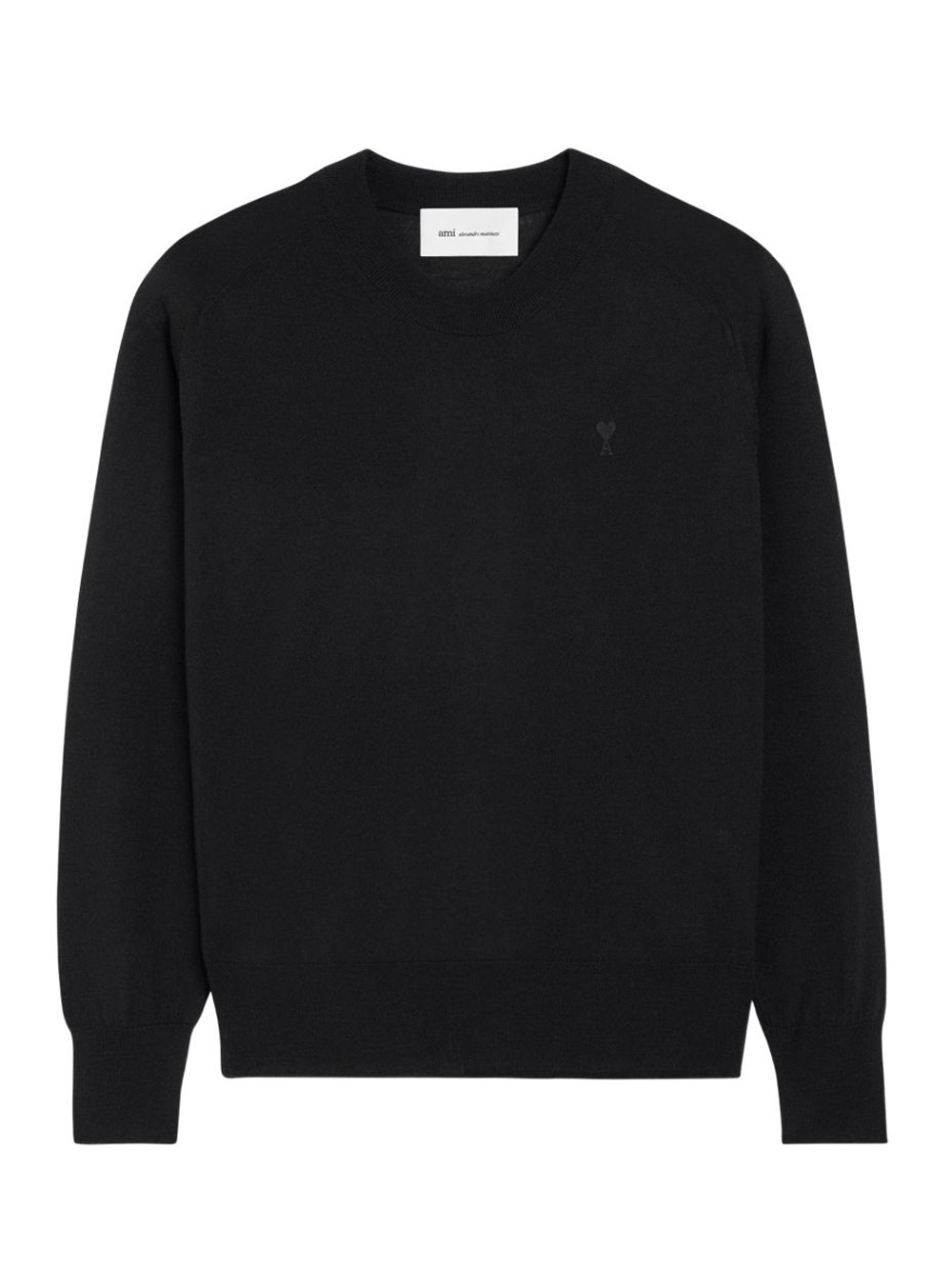 Black ADC sweater by Ami Paris, made of wool, with a round neckline, long sleeves, logo detail, ribbed cuffs, and a ribbed hem.