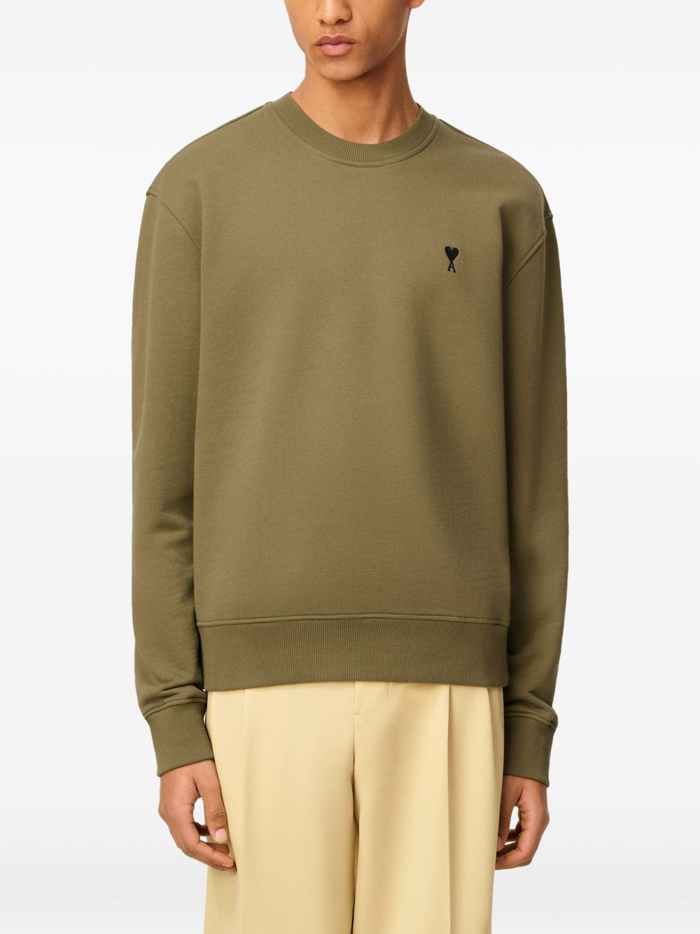 Maglione bronzo ADC di Ami Paris in lana con girocollo, orlo e polsini a coste e logo ricamato in rosso.