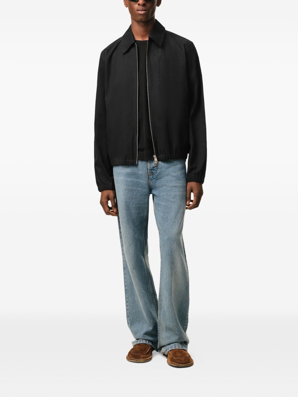 Beige ADC Zipped jacket by Ami Paris in fabric with double-slider zip closure, two side welt pockets, elasticated hems, elasticated waist, and logo on the chest.