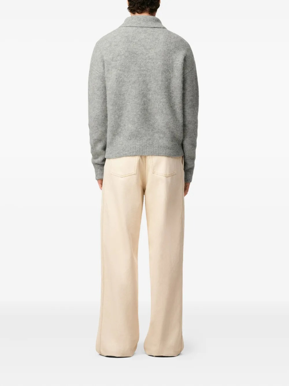 Ami by Ami Paris gray polo shirt in fabric with front placket with buttons, long sleeves, and ribbed hem and cuffs.