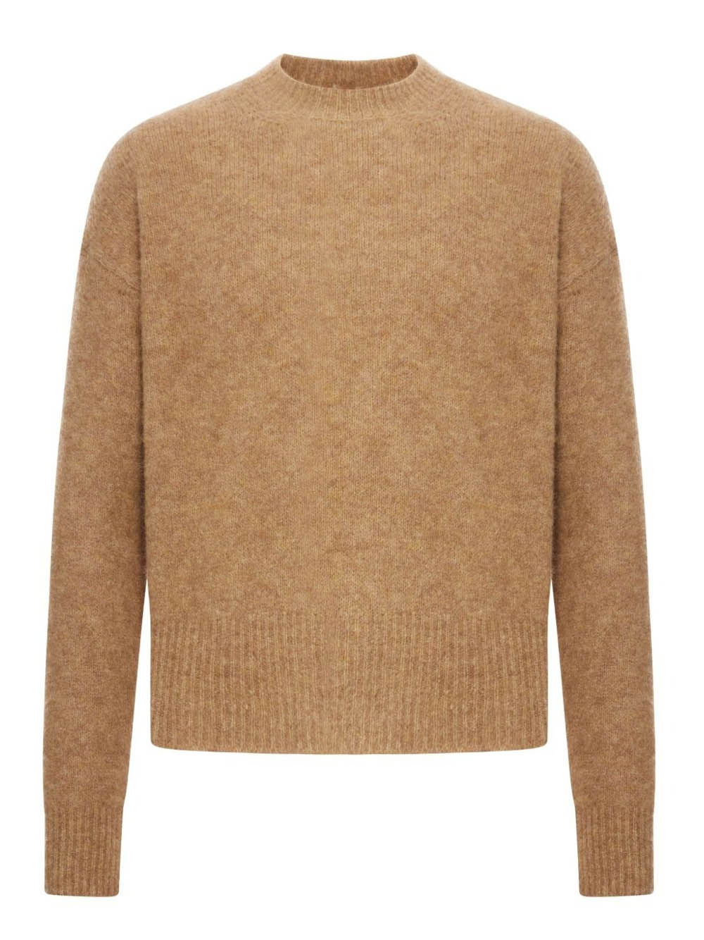 Caramel sweater by Ami Paris in alpaca with crew neck, long sleeves, ribbed hem, and ribbed cuffs.