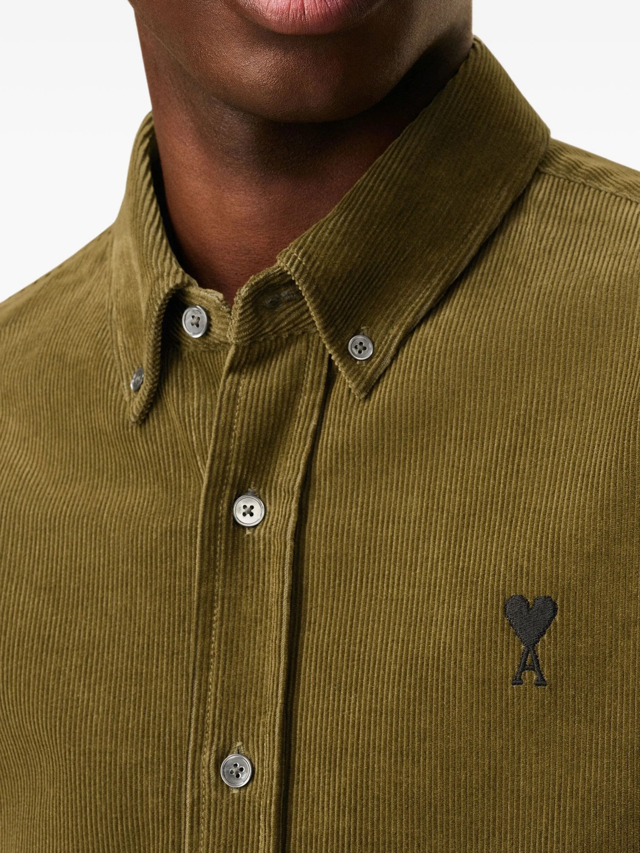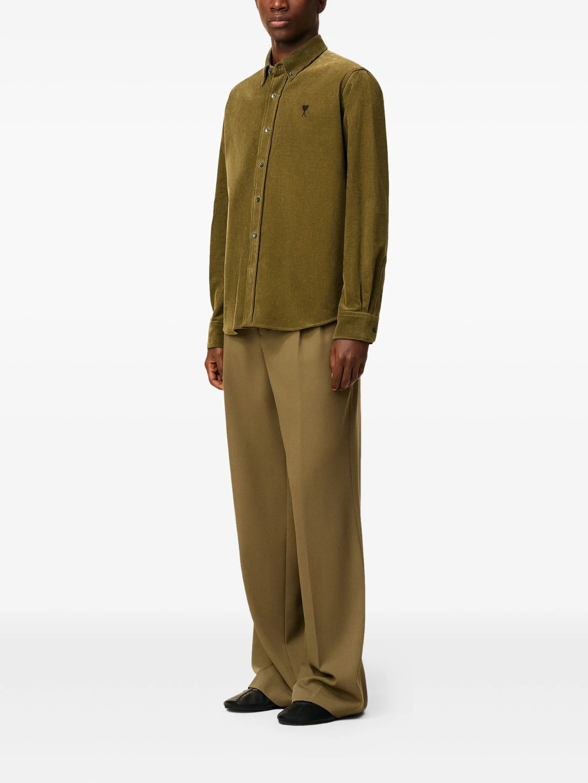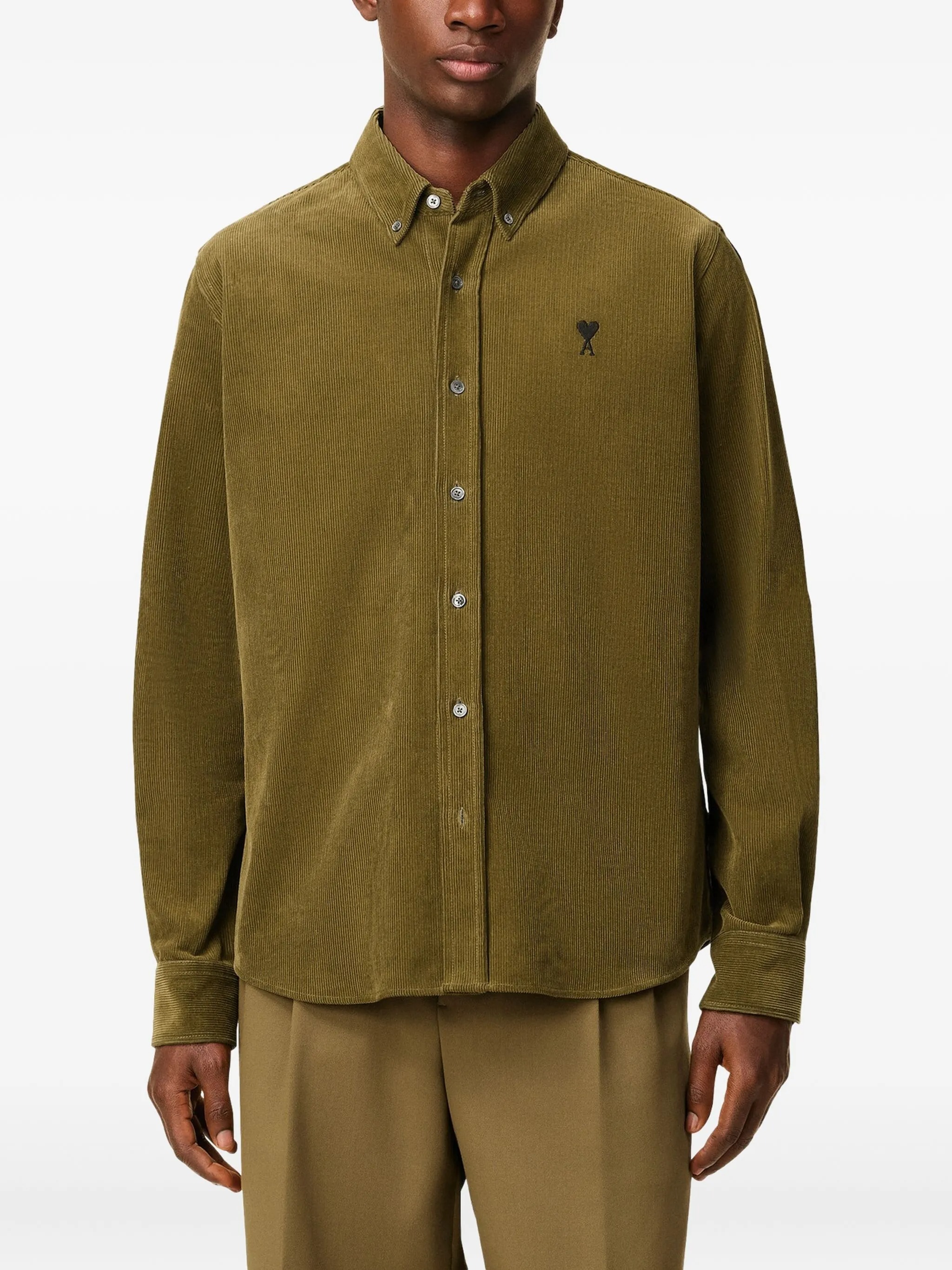 Bronze Classic Fit ADC bronze shirt by Ami Paris in cotton with classic collar, front button closure, conbtrasted embroidered logo, and textured cordury.