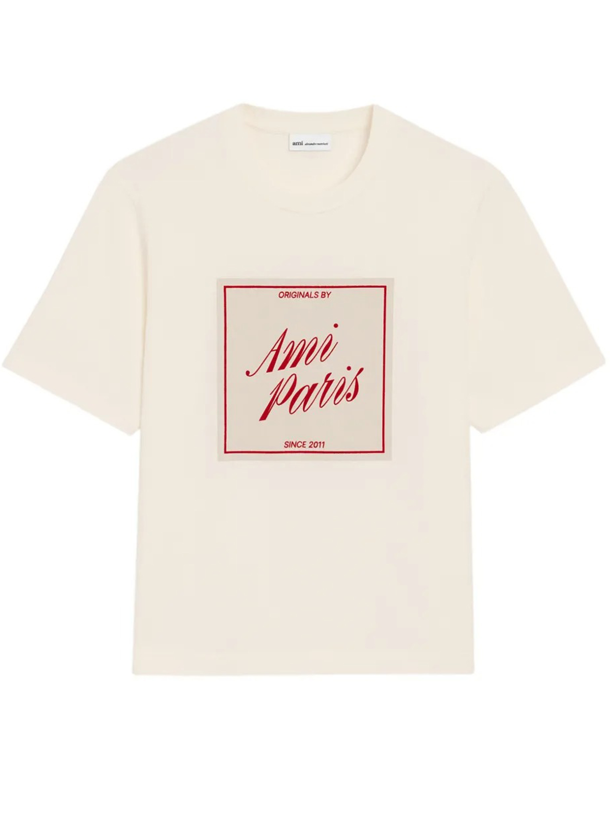 T-shirt bianca Heritage Print di Ami Paris in cotone con girocollo, stampa frontale e orlo dritto.