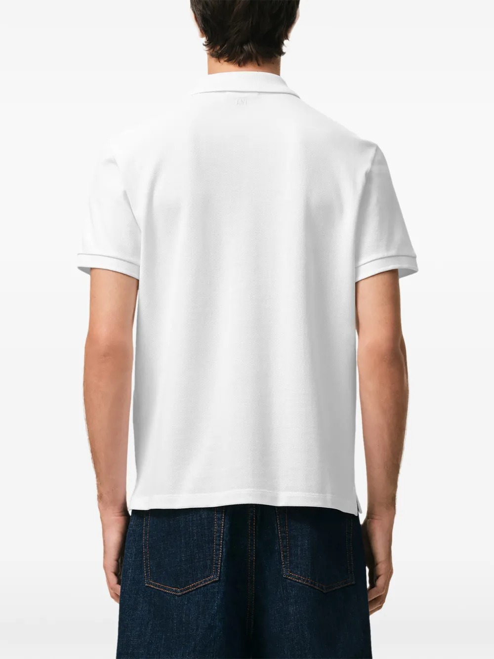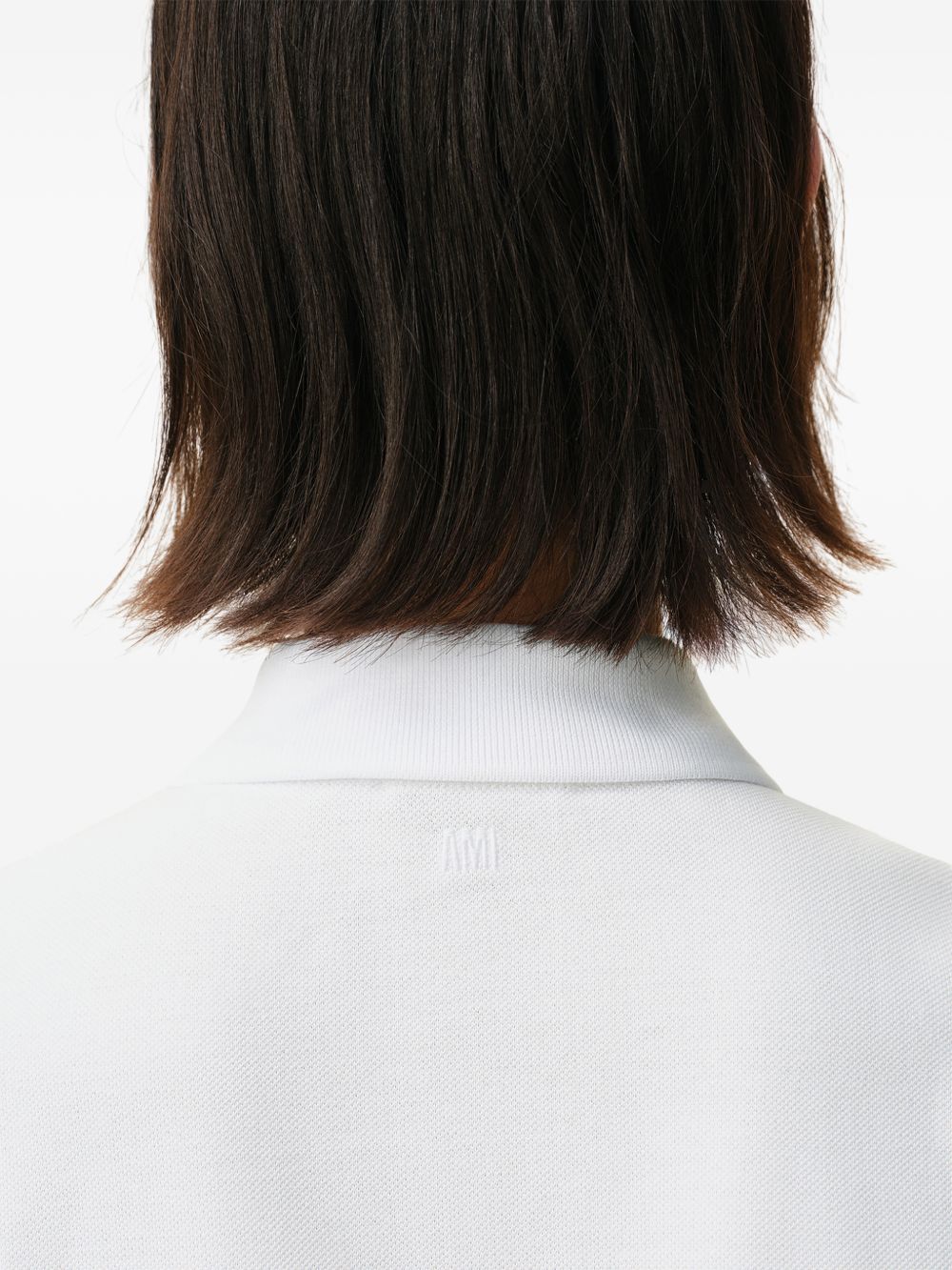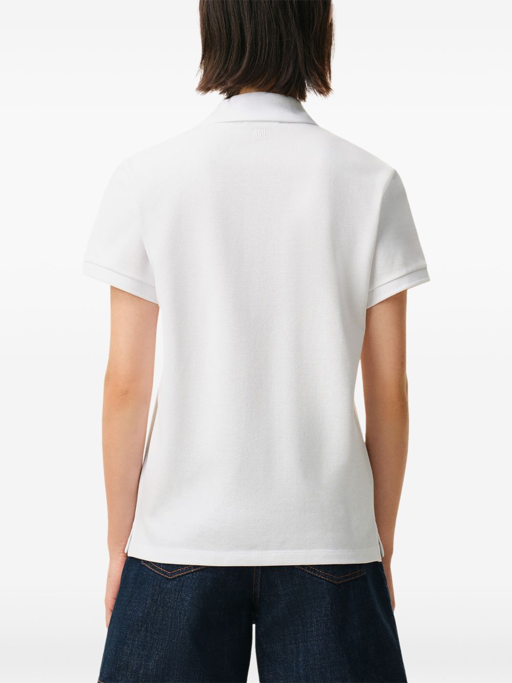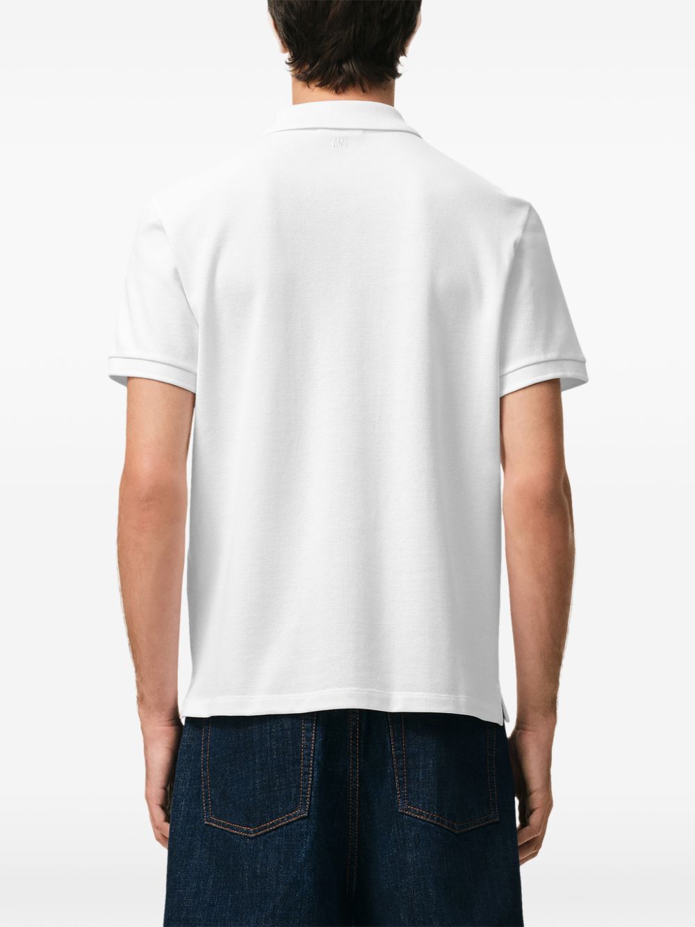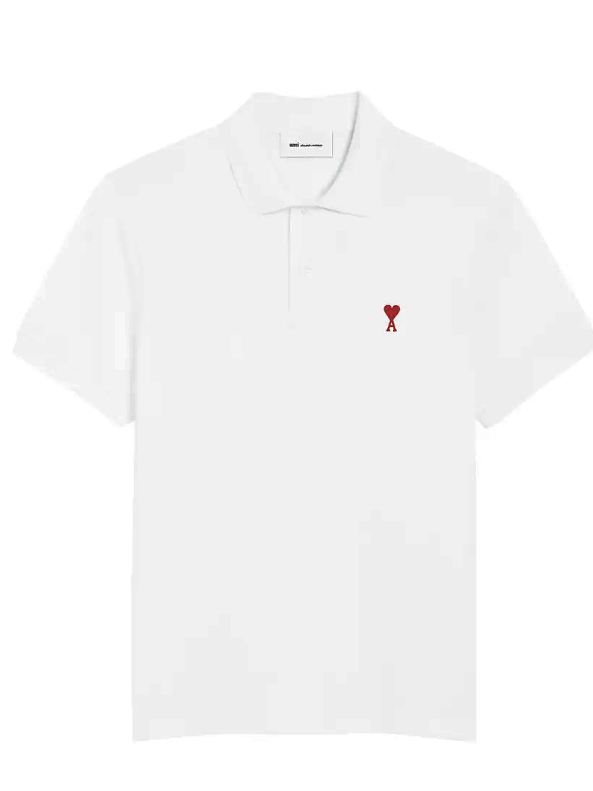 Ami Pris ADC white cotton polo shirt with a classic collar, classic button closure, contrasting embroidered logo on the chest, and a straight hem.