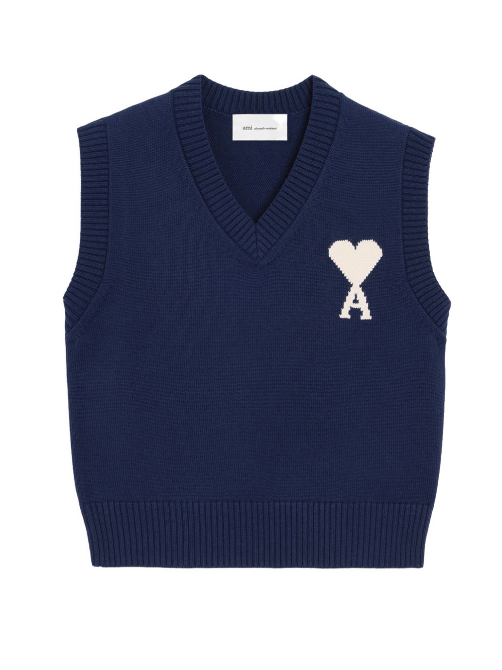 Ami Paris sleeveless ADC top with V-neckline, embroidery on the chest, and ribbed hems.
