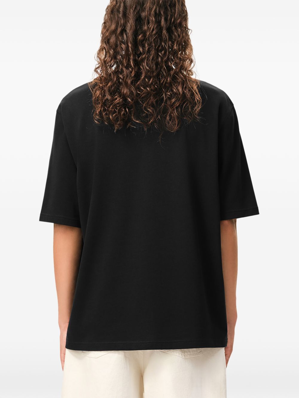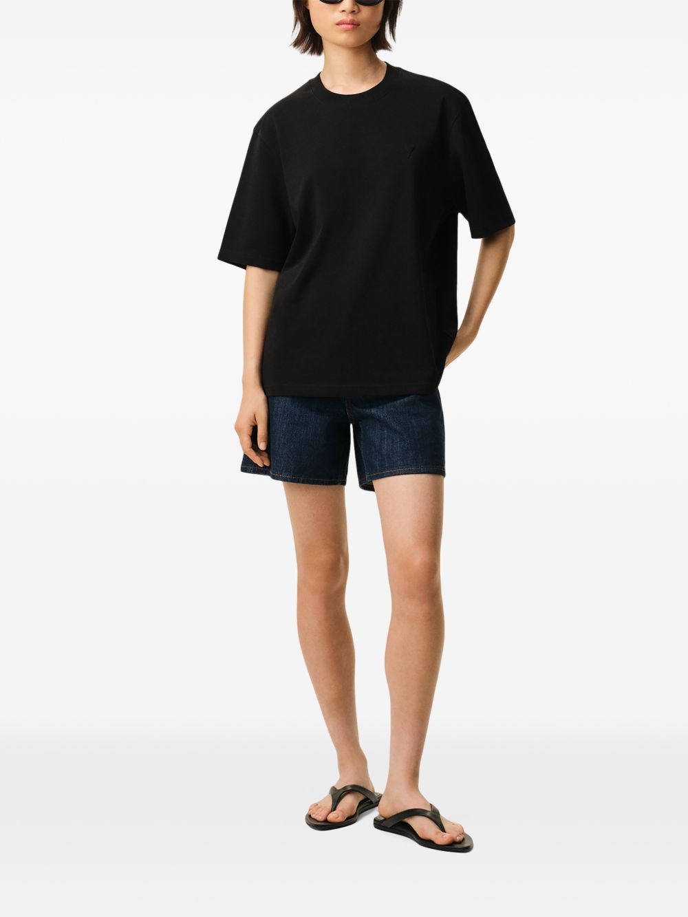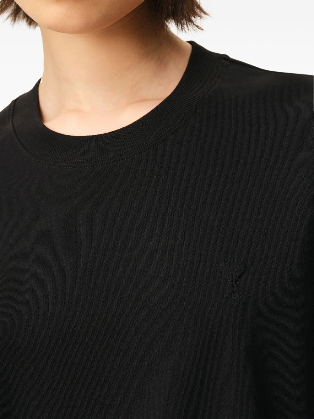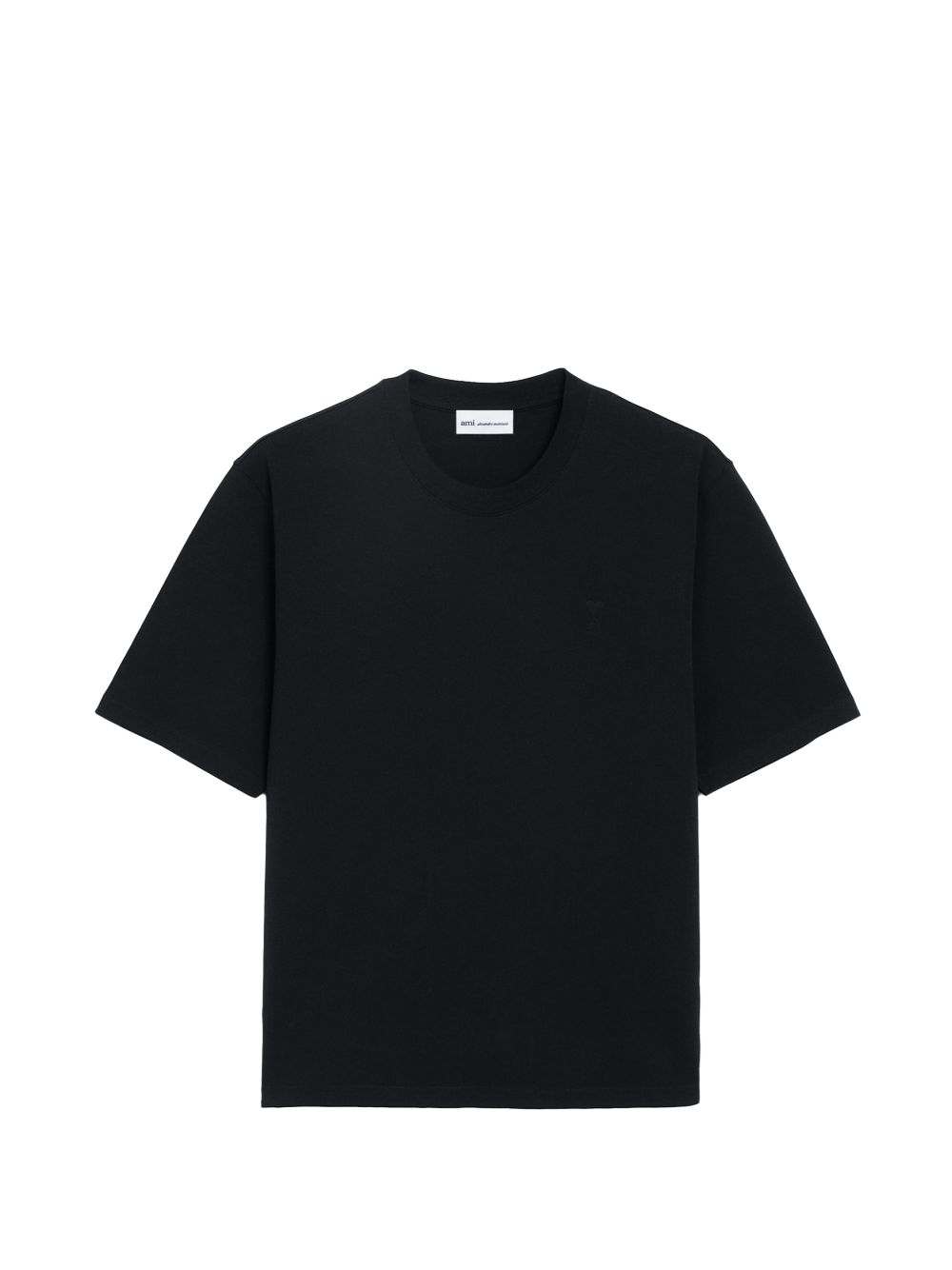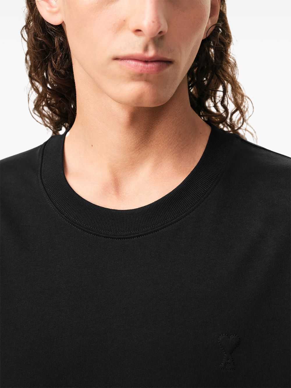 Black cotton ADC T-shirt by Ami Paris with crew neck, embossed Ami de Coeur chest, stitching detail, tone-on-tone embroidery and straight hem.