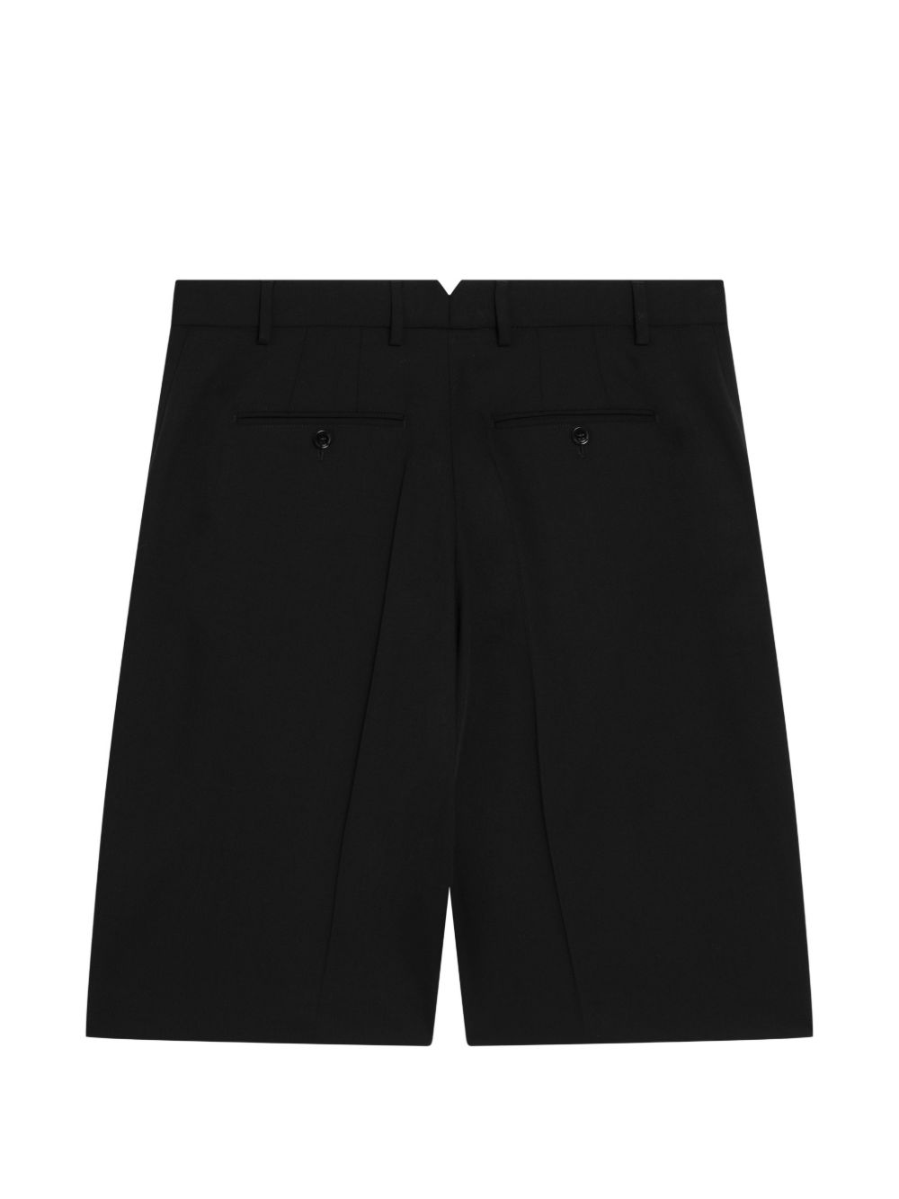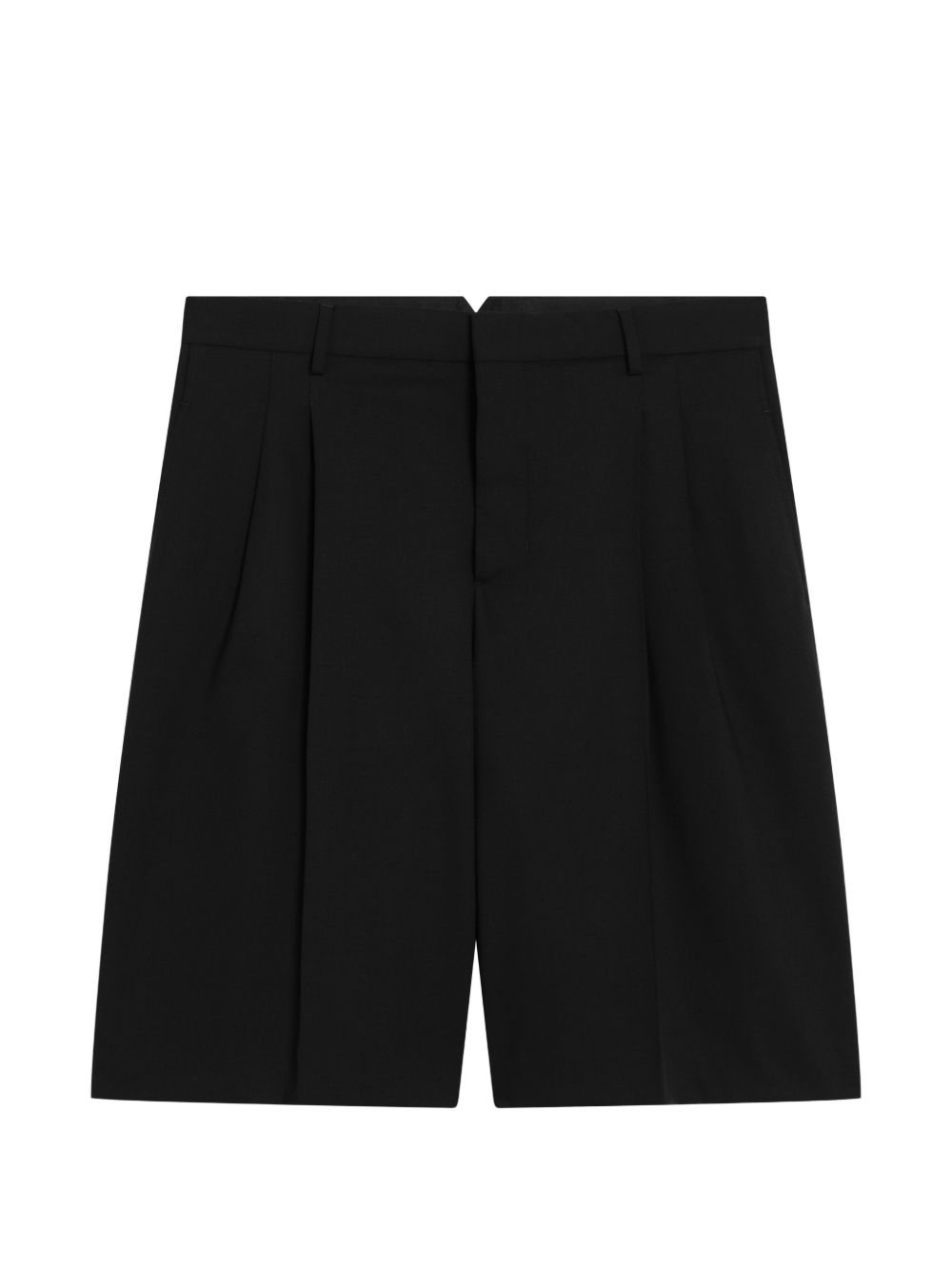 Bermuda neri Wide di Ami Paris in lana con vita con passanti, chiusura con zip, pinces sul davanti, dettaglio a V sul retro, tasche laterali e posteriori e orlo dritto.