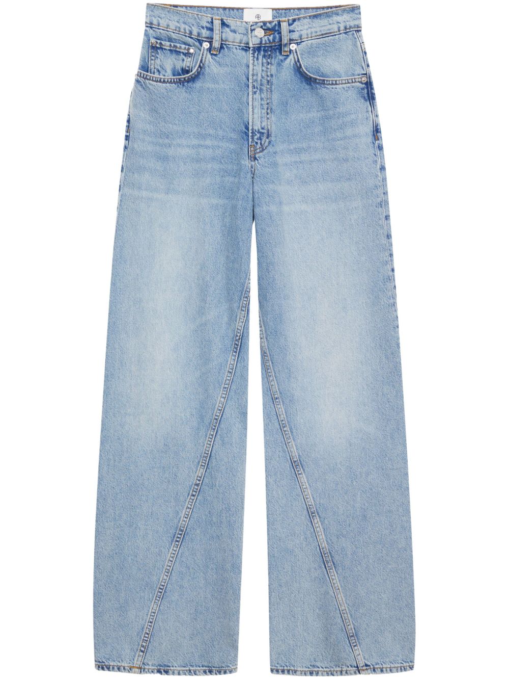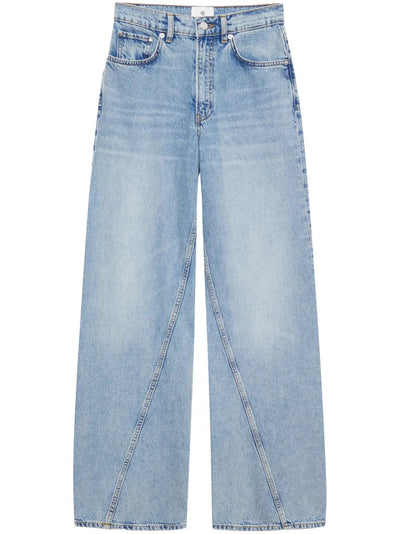 Blue cotton Brie jeans by Anine Bing with waistband with belt loops, a front button and zipper closure, a 5-pocket design, a wide leg, and a straight hem.
