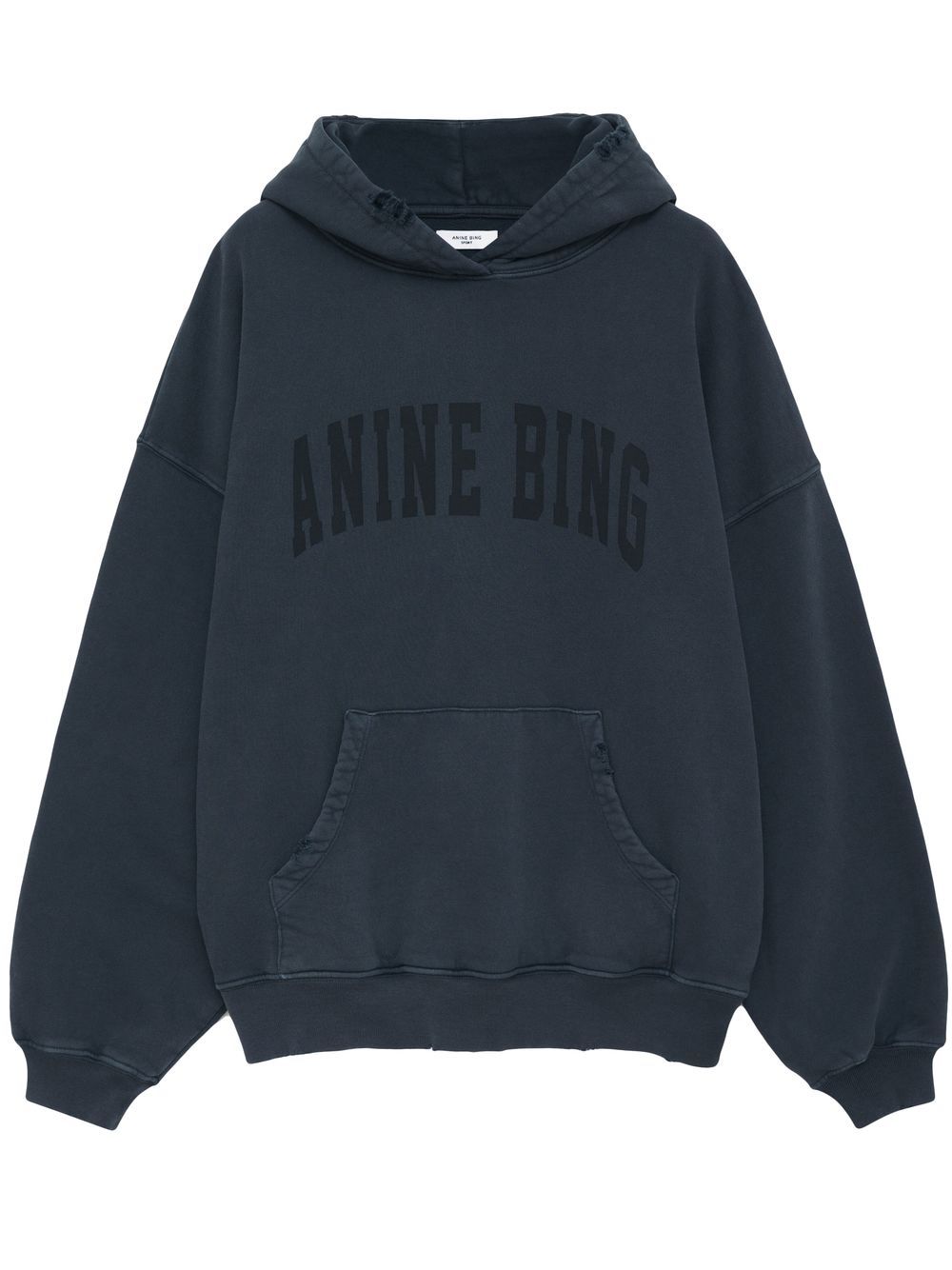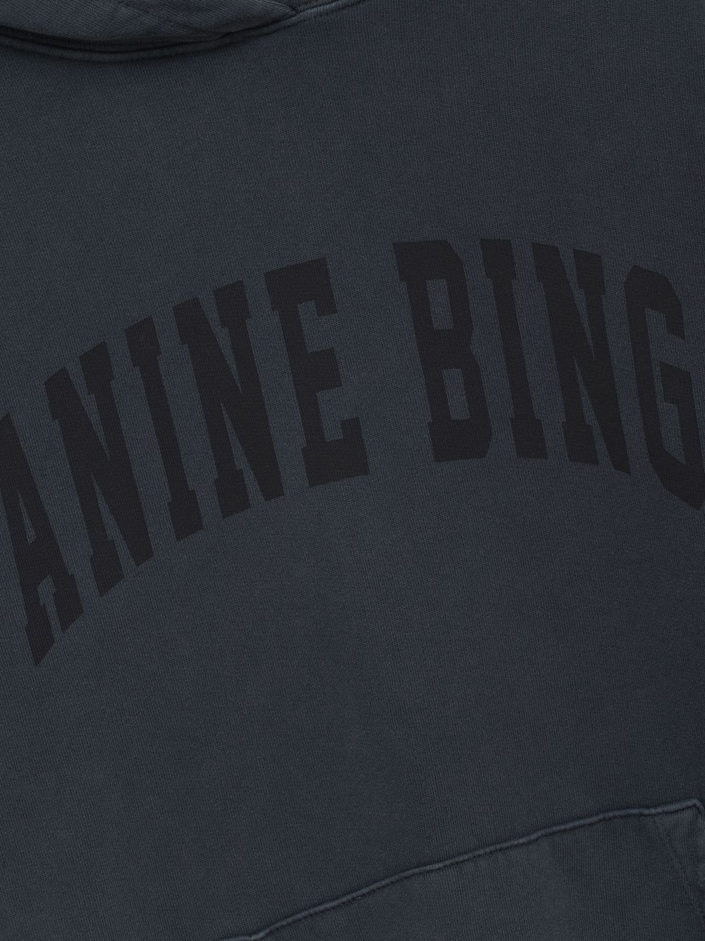 Black faded Harvey cotton sweatshirt by Anine Bing whit crew neck, long sleeves, ribbed trim, and front print.
