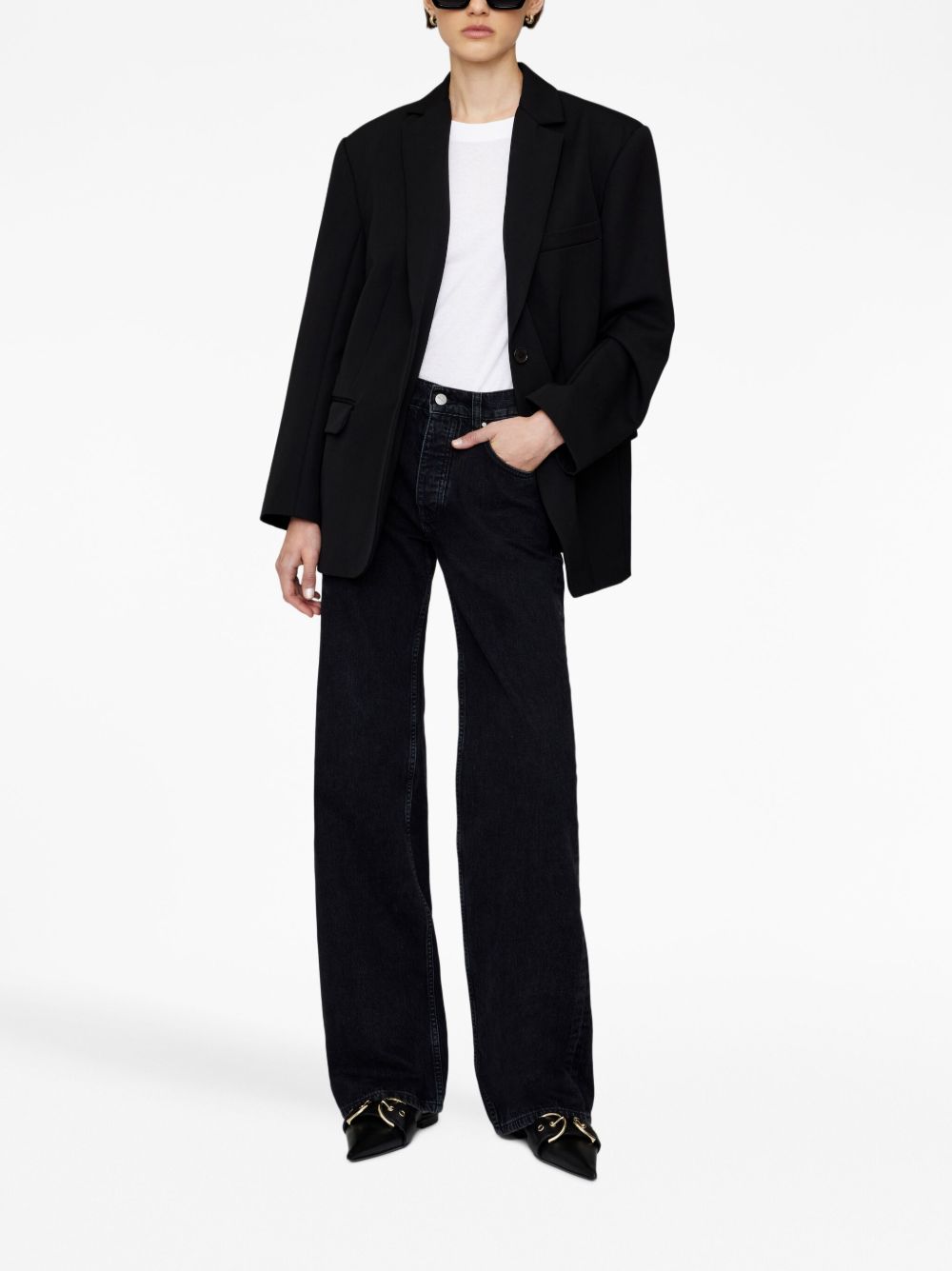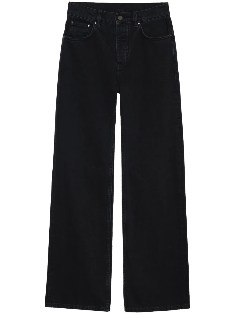 Anine Bing Hugh black cotton jeans with belt loops, front button closure, 5-pocket design, and straight hem.