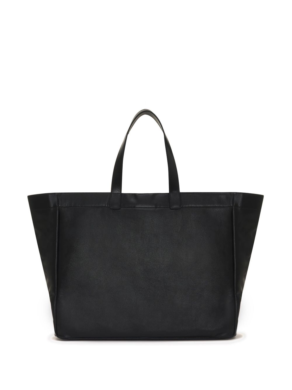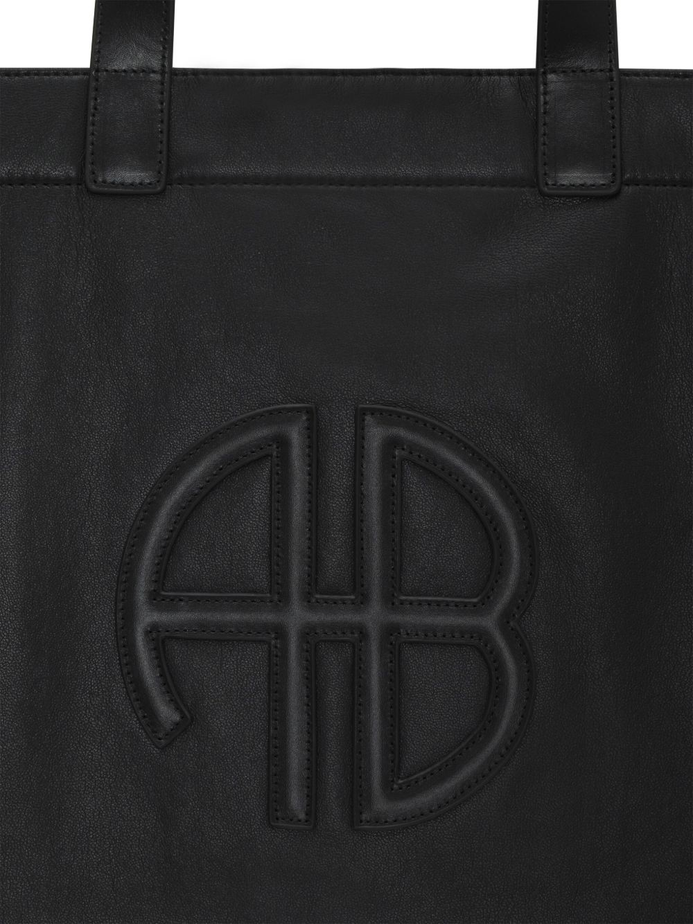 Anine Bing Rio Large black leather tote bag with two handles and embossed front print.