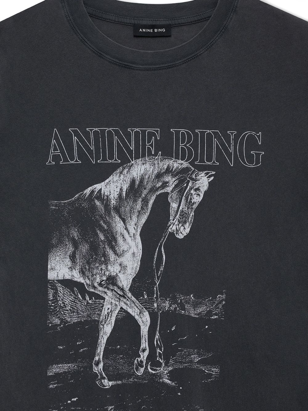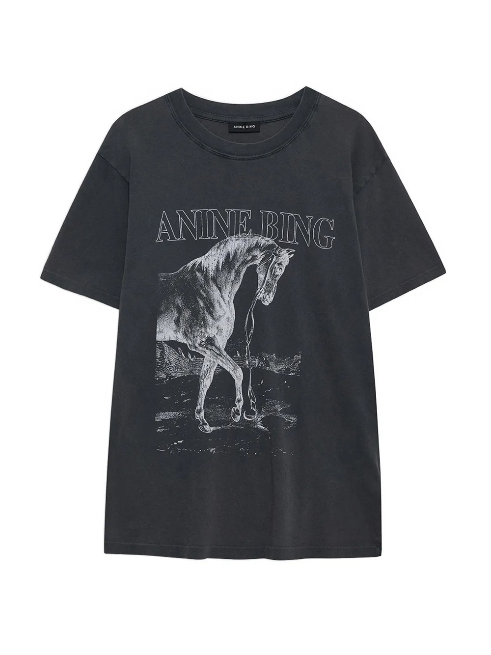 Black Lili T-shirt by Anine Bing in cotton with a crew neck, short sleeves, front print, and straight hem.