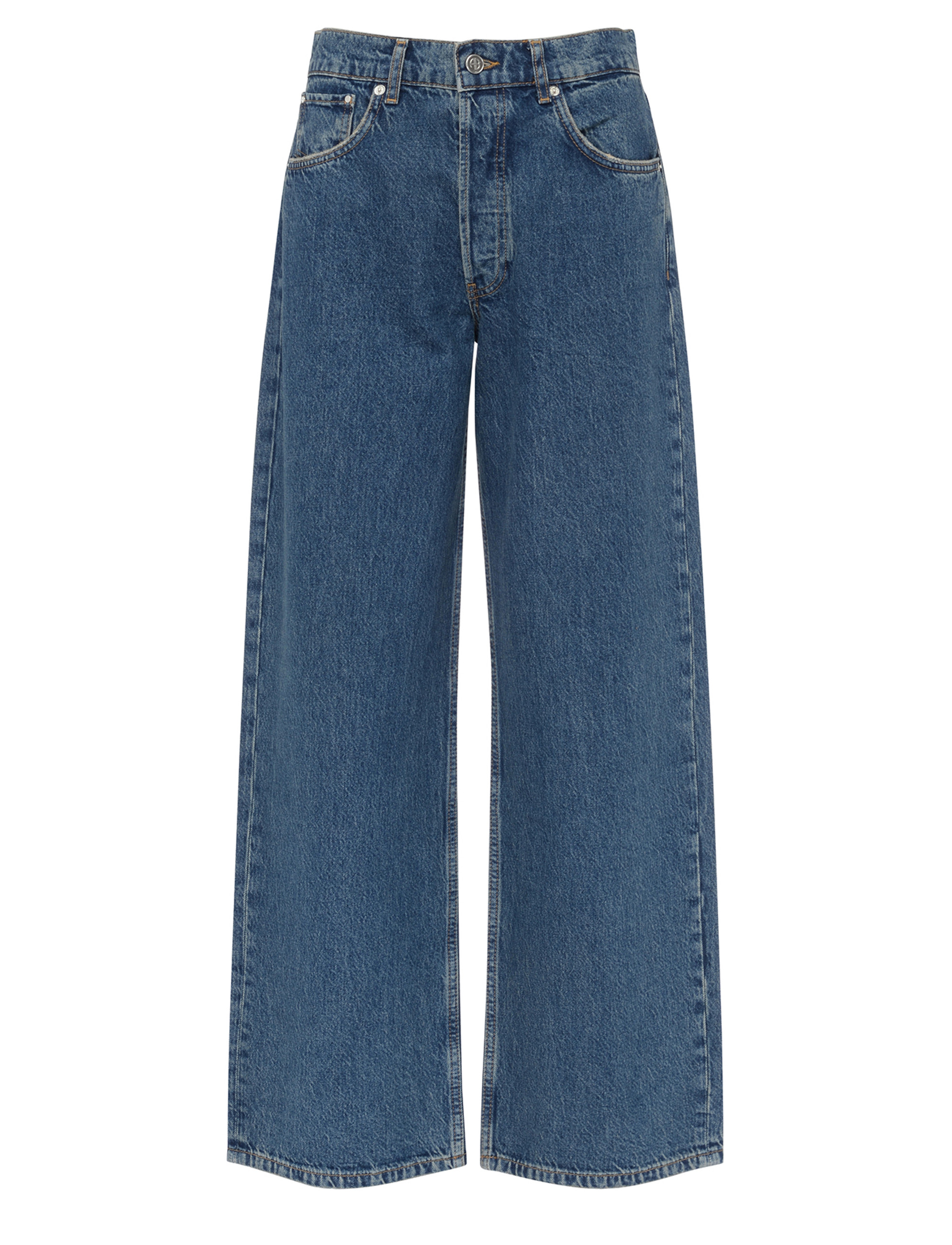 Manon blue cotton jeans by Anine Bing with waistband with belt loops, a front button closure and a five-pocket design.