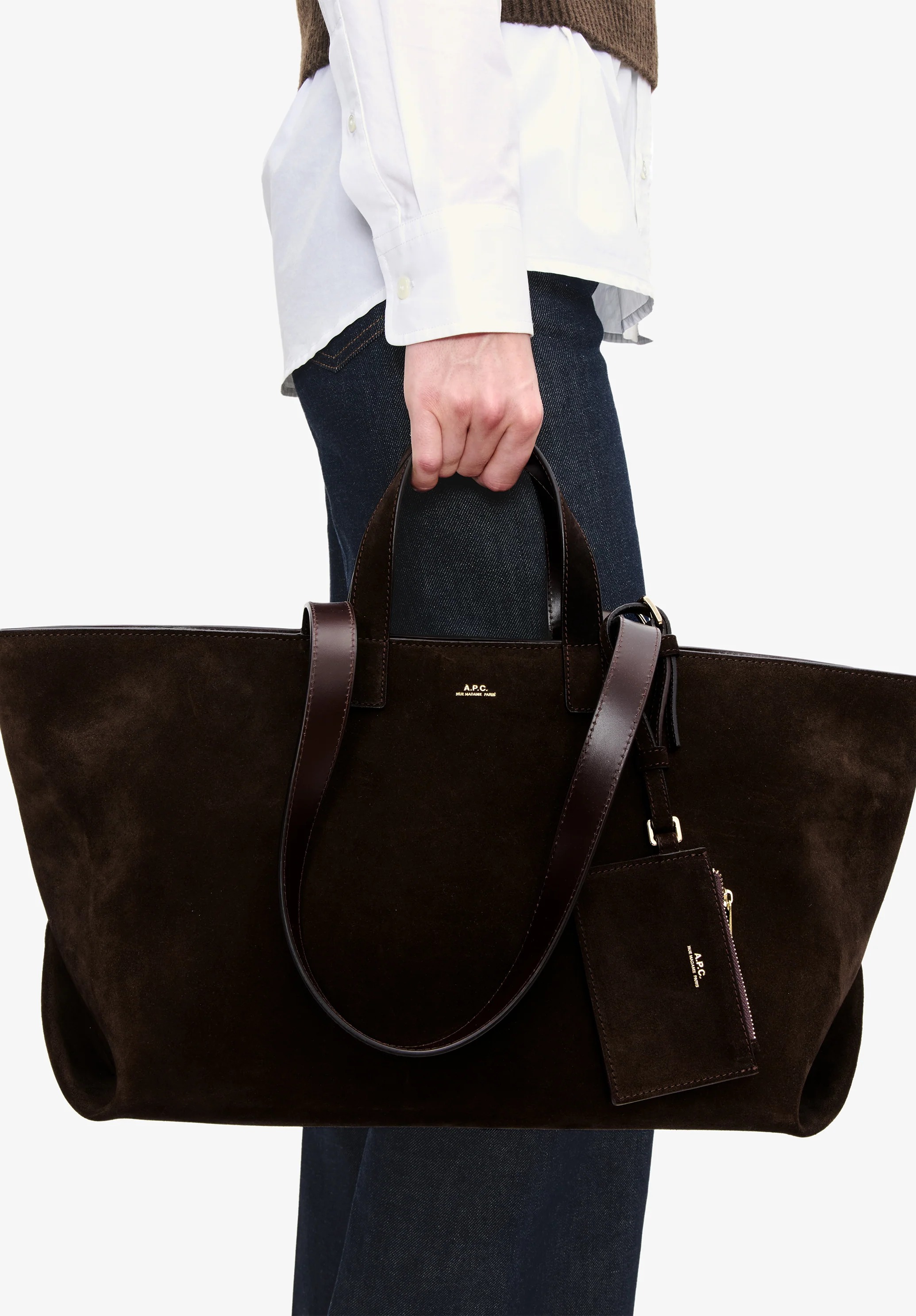 APC leather Kaik bag with double handle, top zip closure, and internal pocket