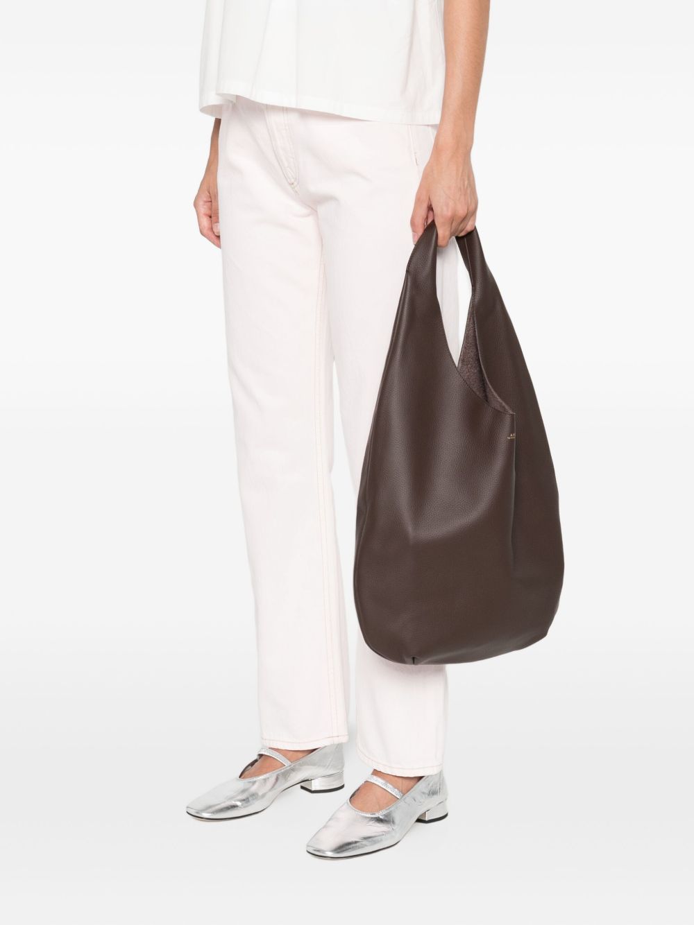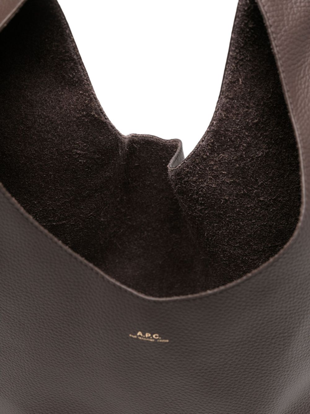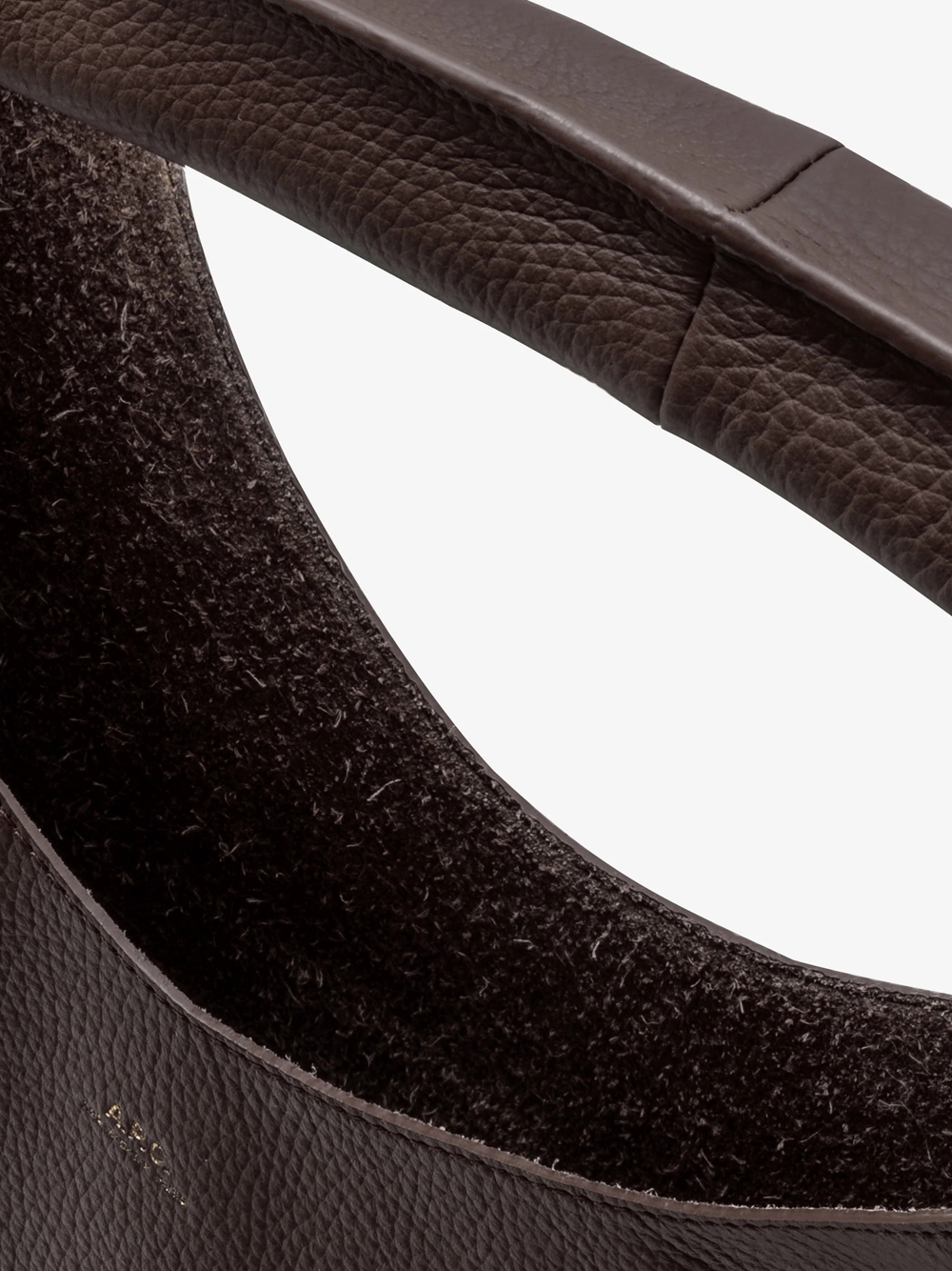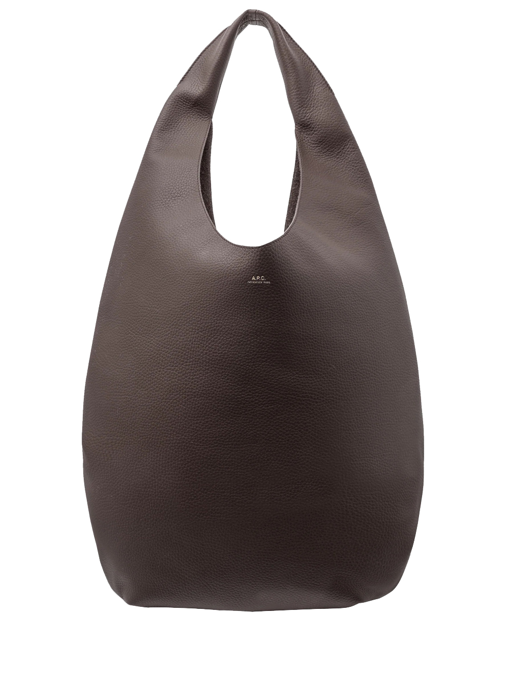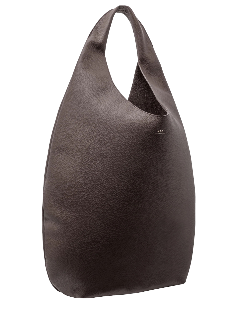 Le Neige brown bag by A.P.C. in polyurethane with single handle and logo on the front.