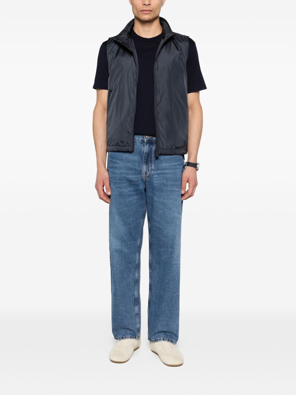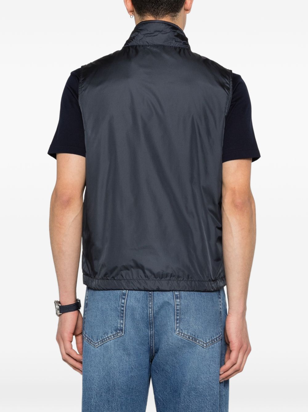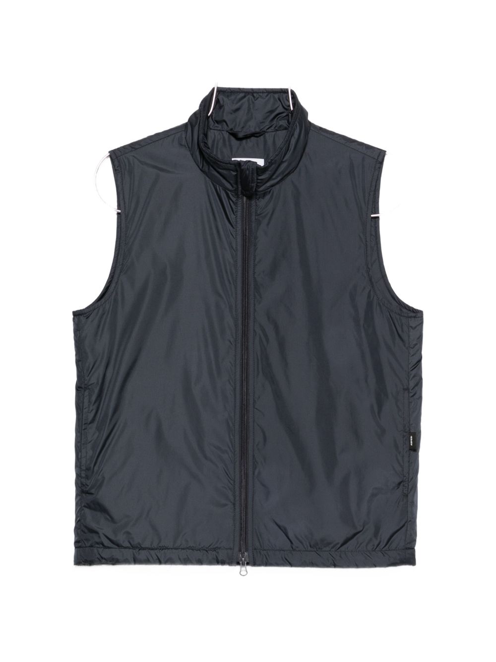 Navy nylon Vernes gilet by Aspesi with high collar, front zip fastening, sleeveless and straight hem