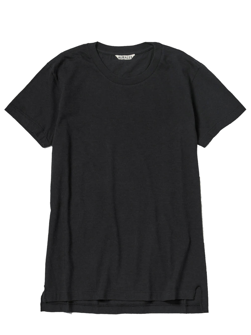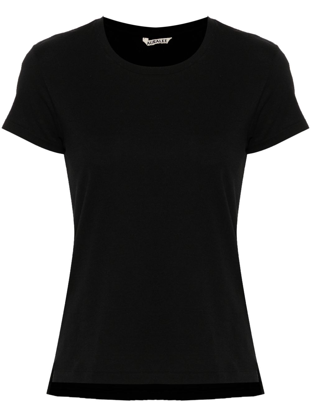 Black cotton Auralee T-shirt with crew neck, seamless design and straight hem.