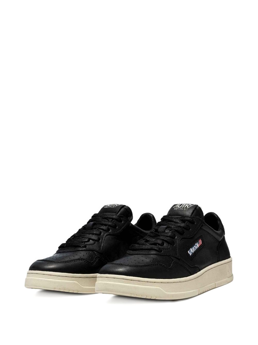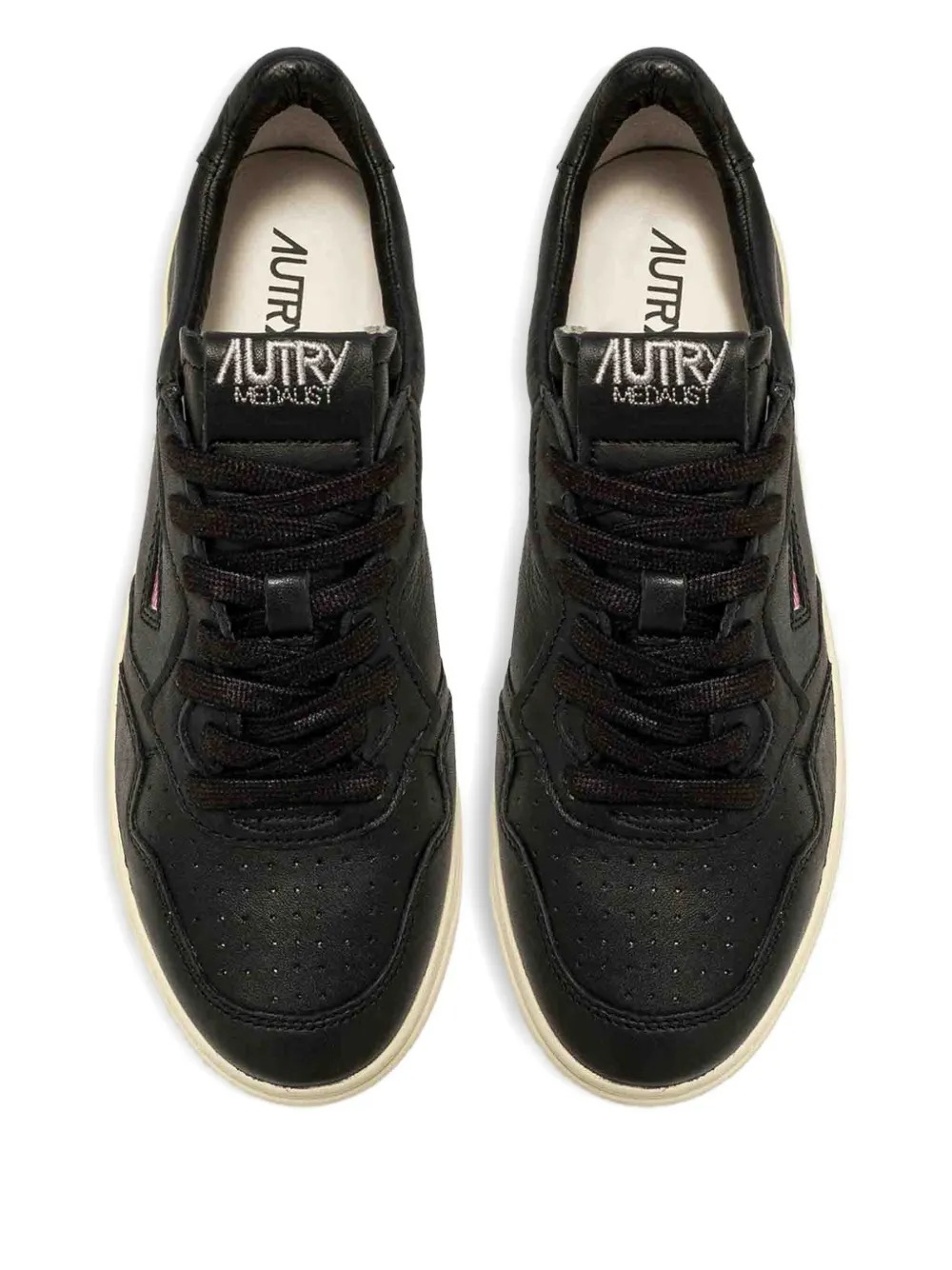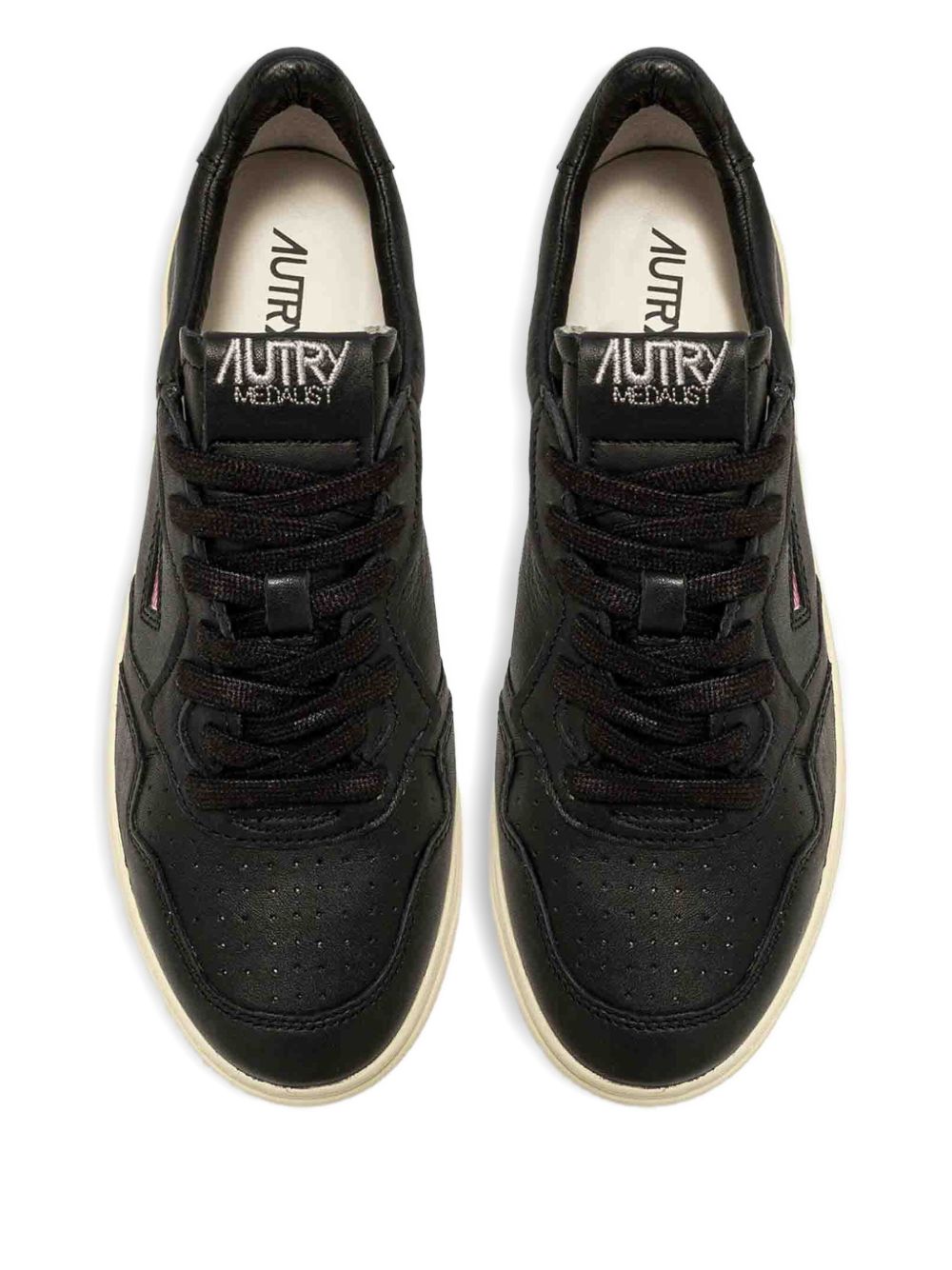 Black Medalist Aulw GG05 leather sneakers by Autry whit round toe, a side logo, perforated details, a front lace-up closure and a flat rubber sole.