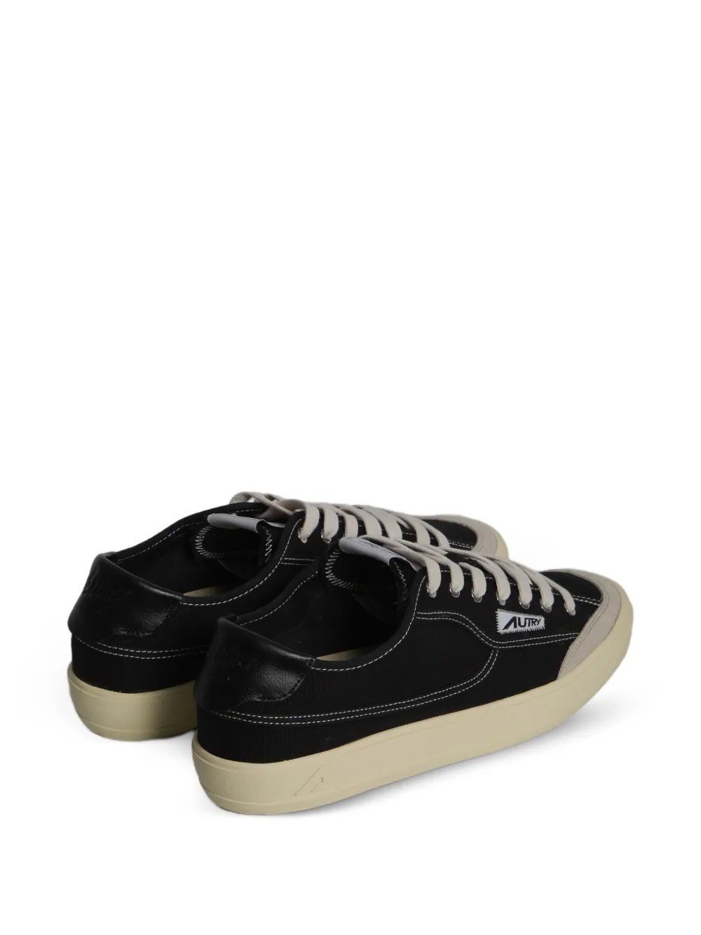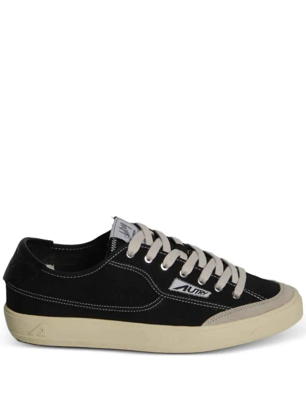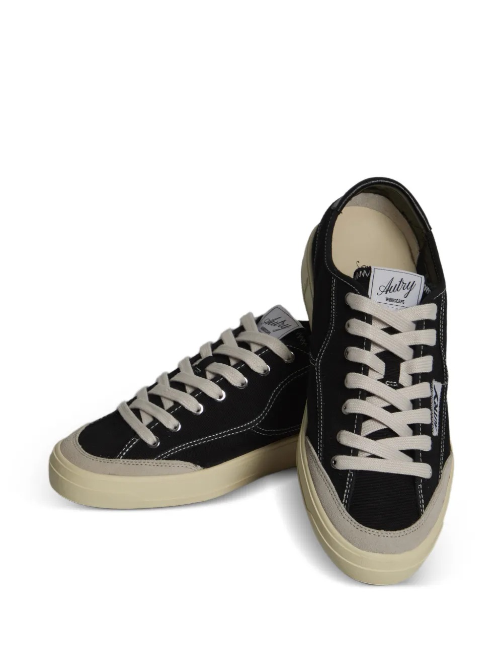 Autry Windscape black sneakers in leather and canvas, featuring a black leather heel tab, suede accents, a logo patch, and a rounded toe.