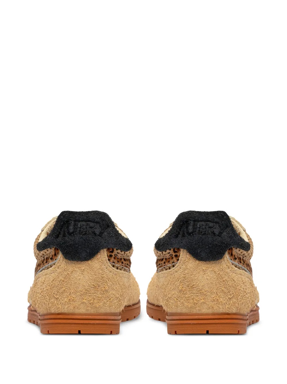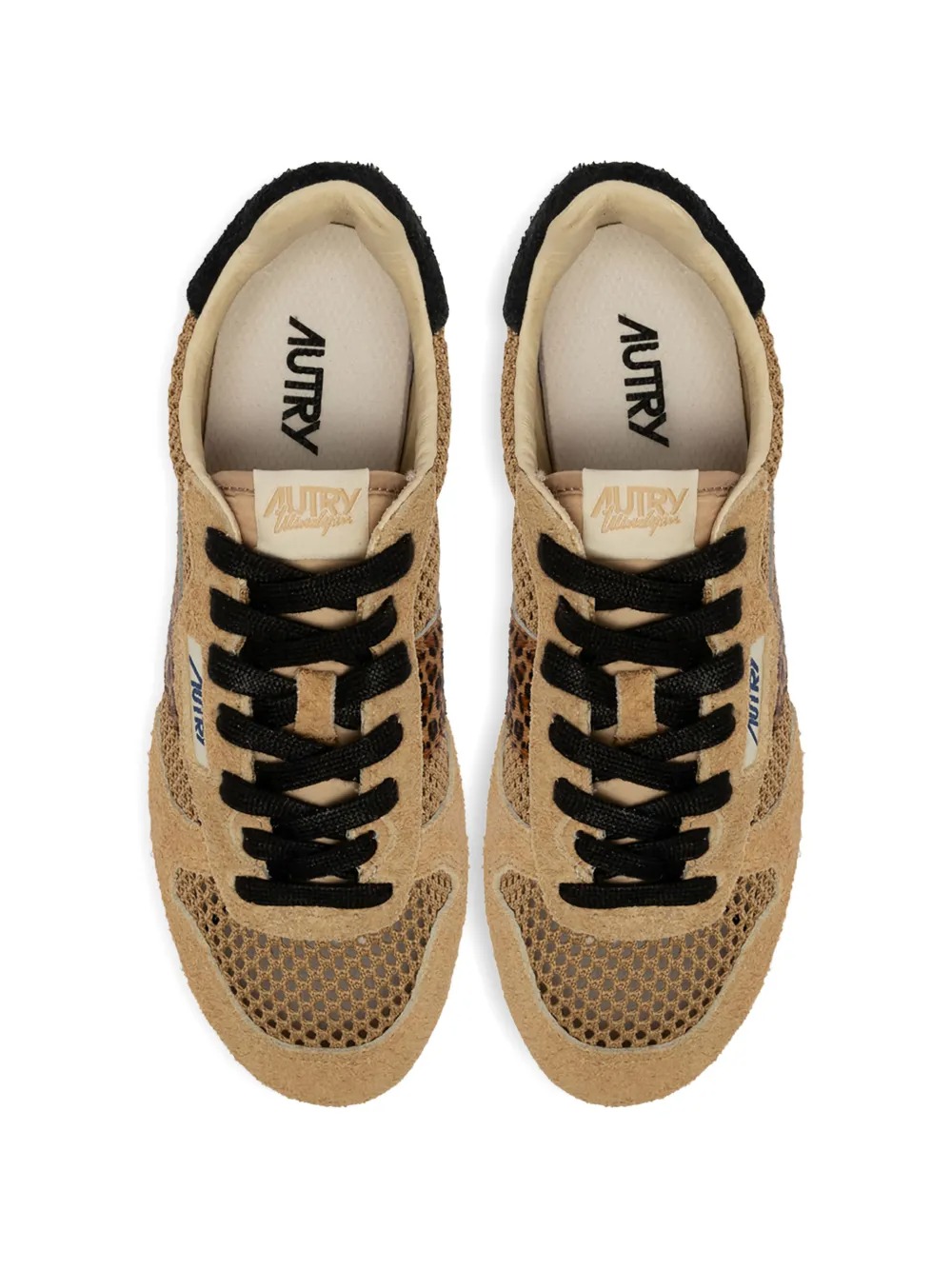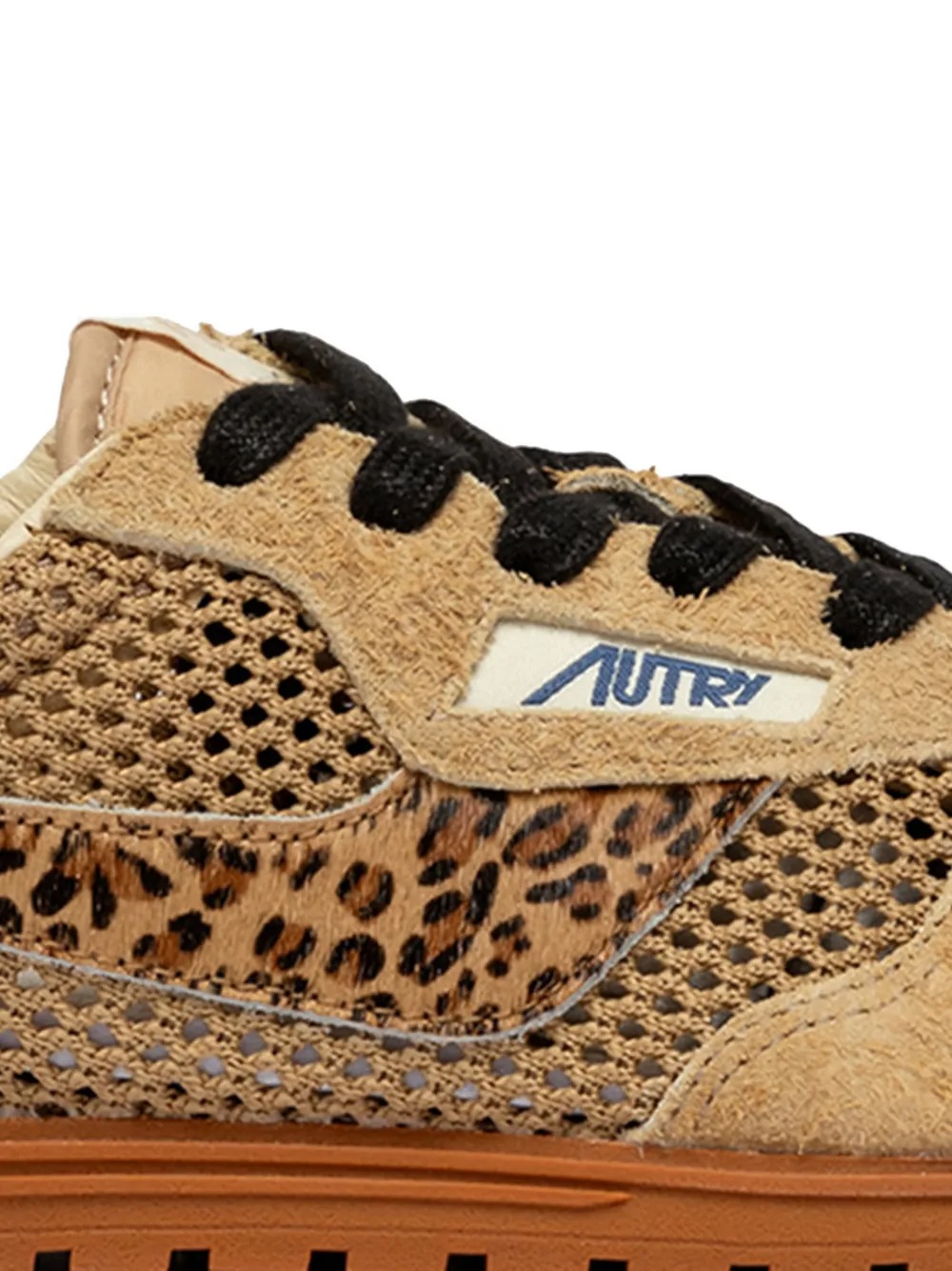 Autry brown Windspin sneakers in leather with almond toe, lace-up closure, suede inserts, logo appliqué on the side, and contrasting rubber sole.