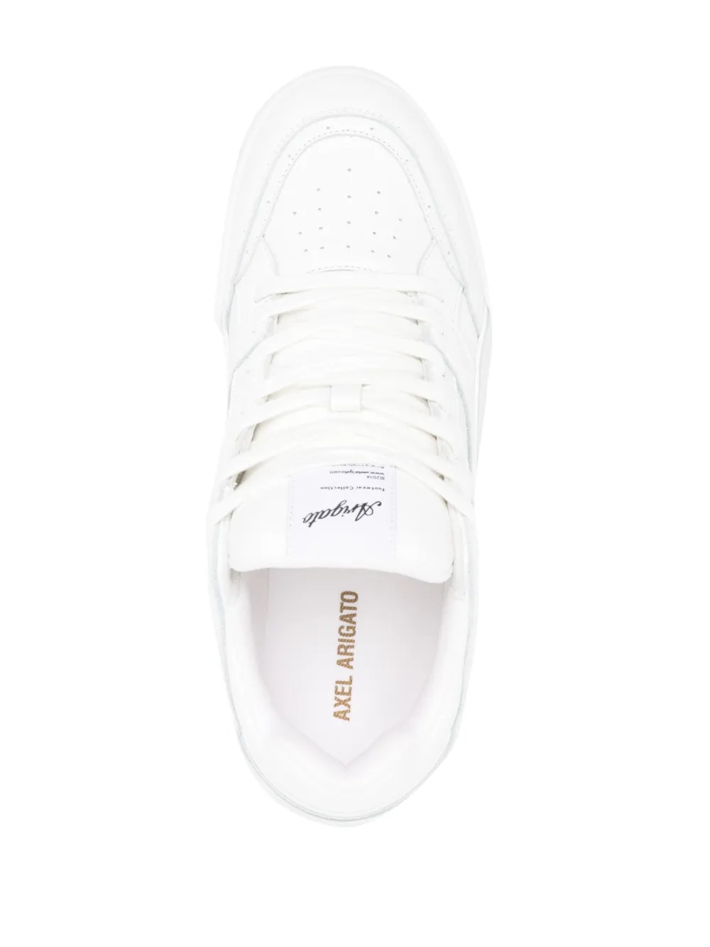 White Area Lo sneakers by Axel Arigato in leather with round toe, contrasting logo on the side, perforated side panels, front lace-up closure and flat rubber sole.