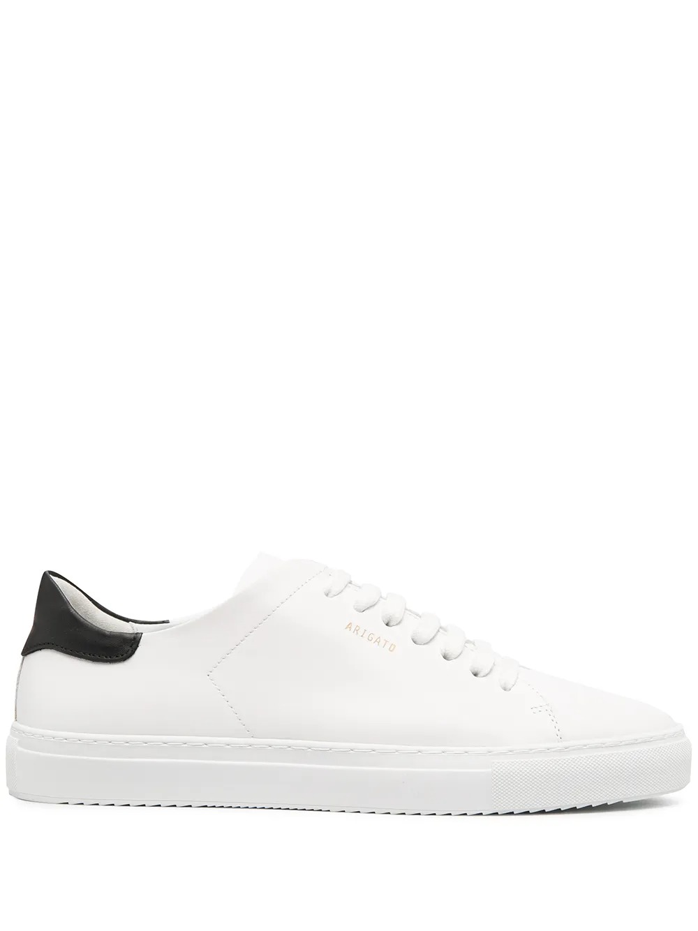 White Clean 90 sneakers by Axel Arigato in leather with round toe, contrasting side logo, contrasting panel on the heel, front lace-up closure and flat rubber sole.