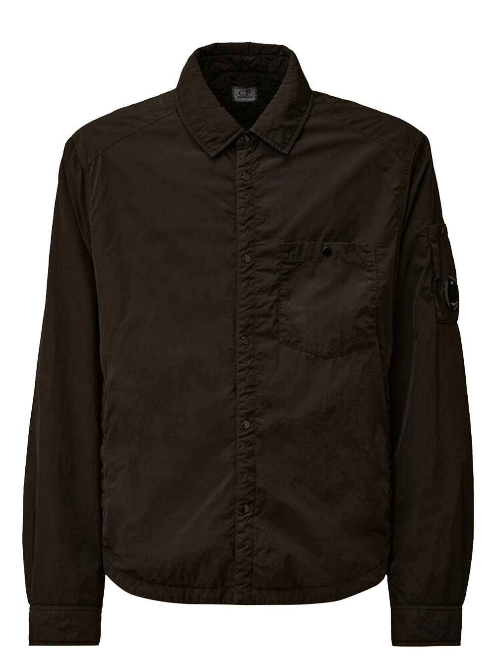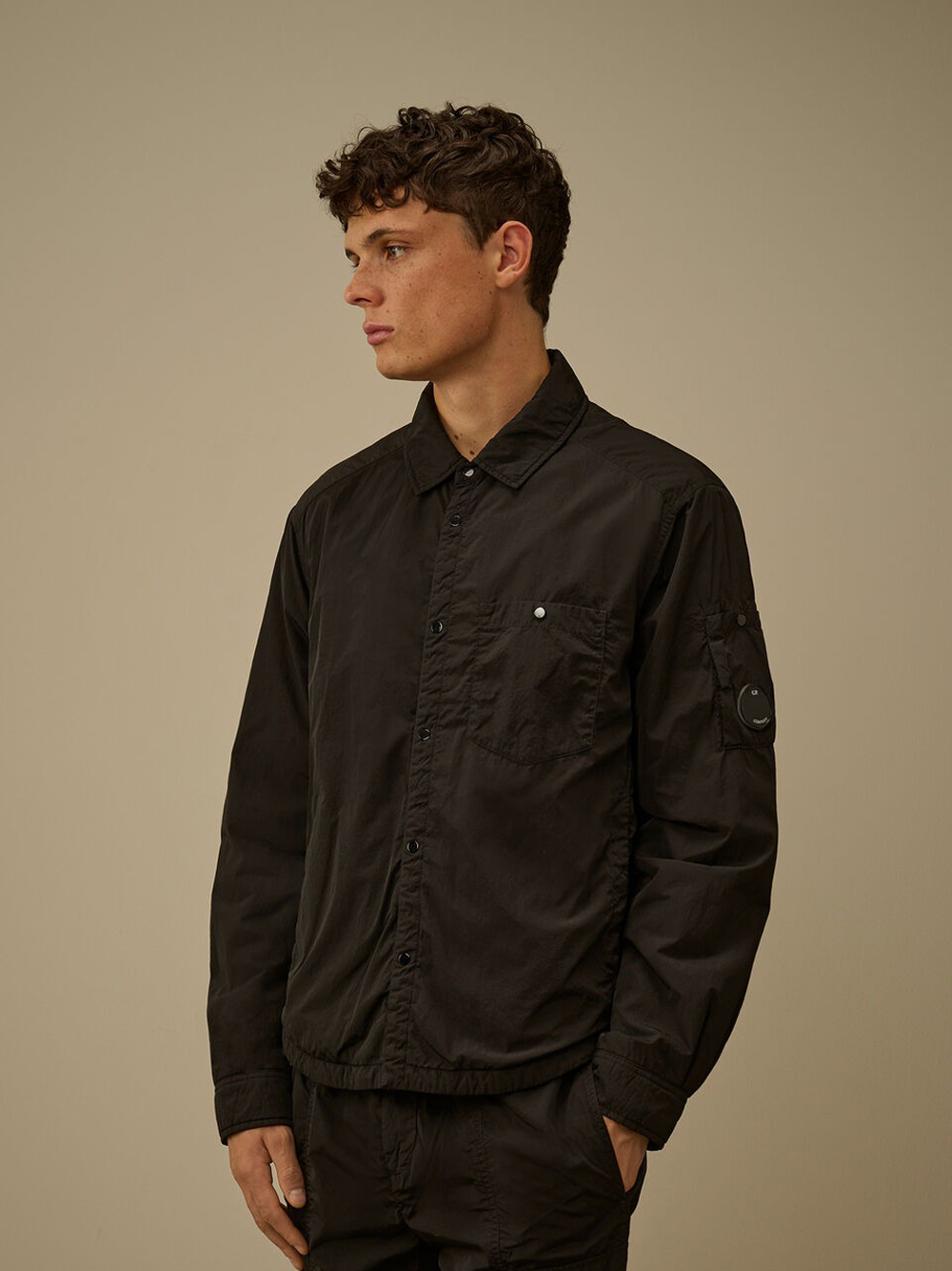 Black jacket by C.P. Company in polyamide with button closure, chest pocket, patch pocket, long sleeves, and pointed collar.