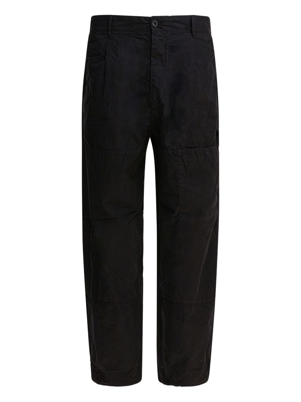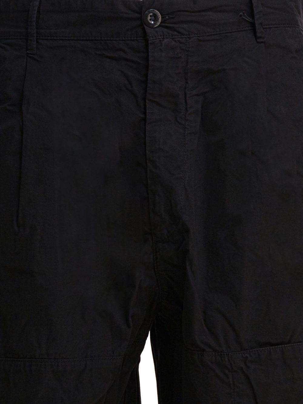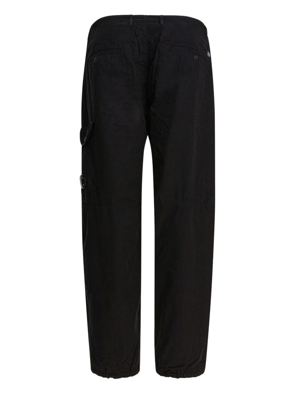 Pantaloni neri Microreps boxy cargo di C.P. Company in cotone con vita con passanti, chisura frontale con bottone, tasca laterale con dettaglio lente, tasche posteriori con bottone e orlo con coulisse regolabile.