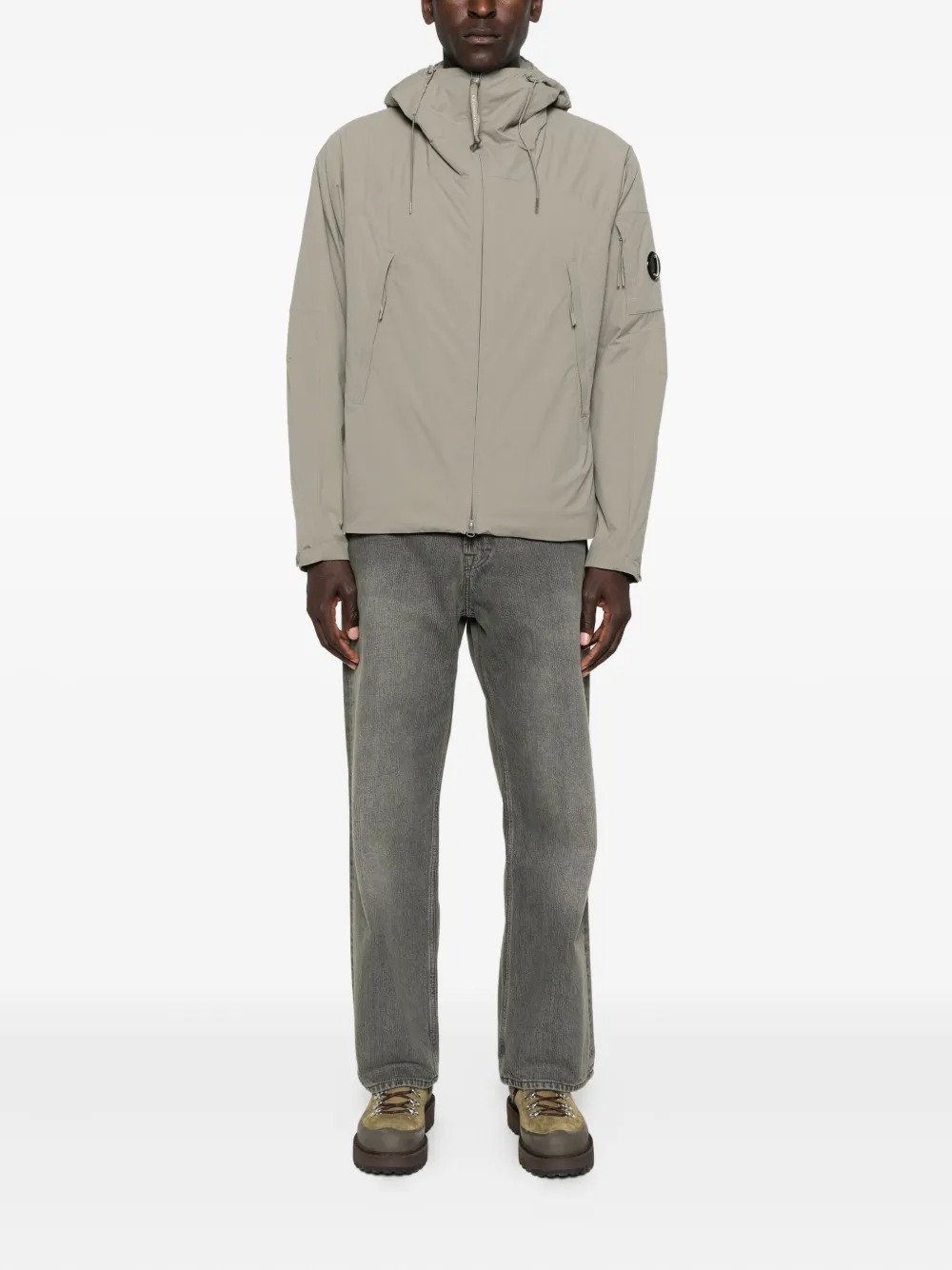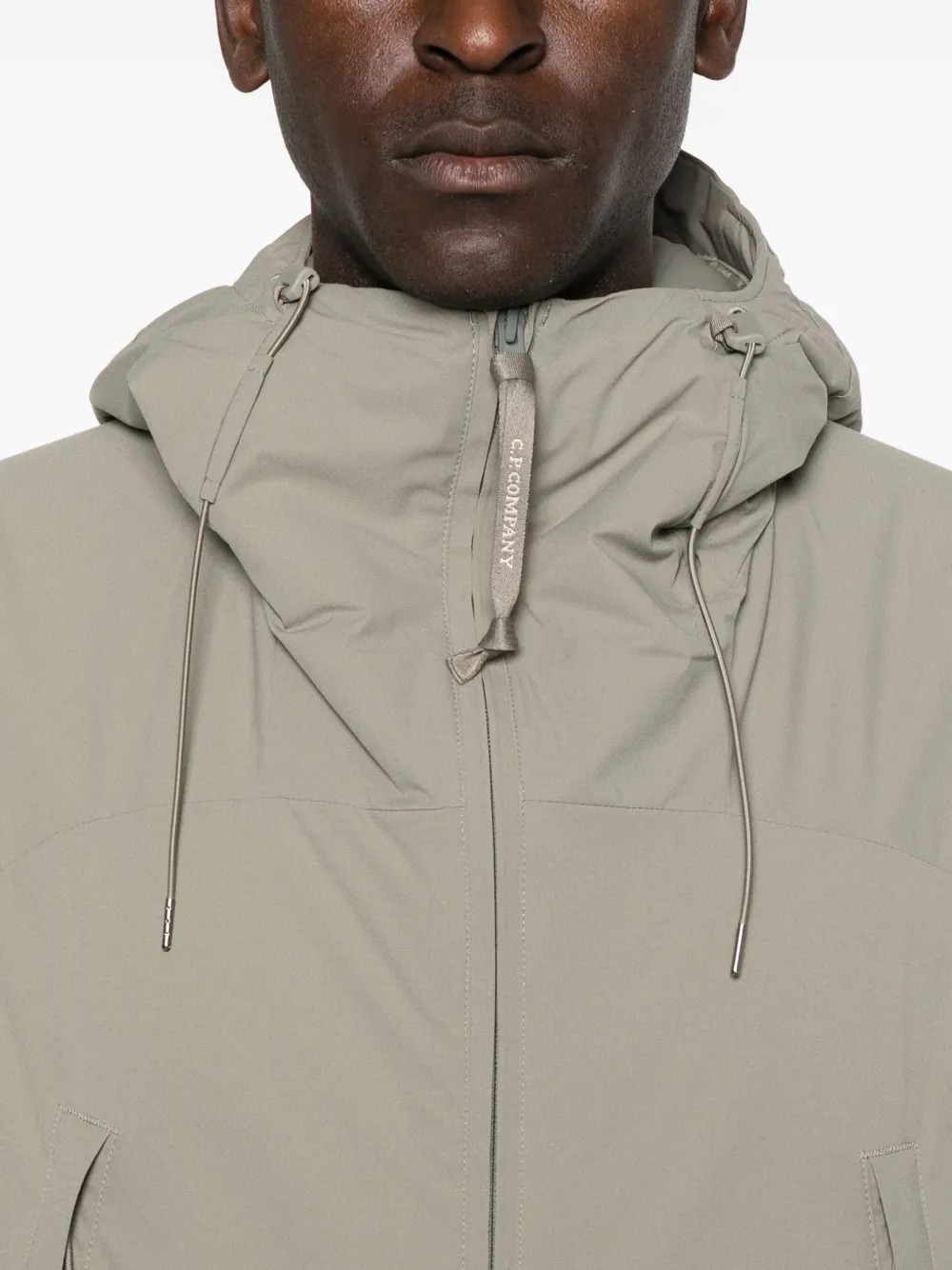 Pro-Tek hooded padded jacket by C.P. Company in polyester with adjustable hood, full double-slider zip closure, side zip pockets, and straight hem.