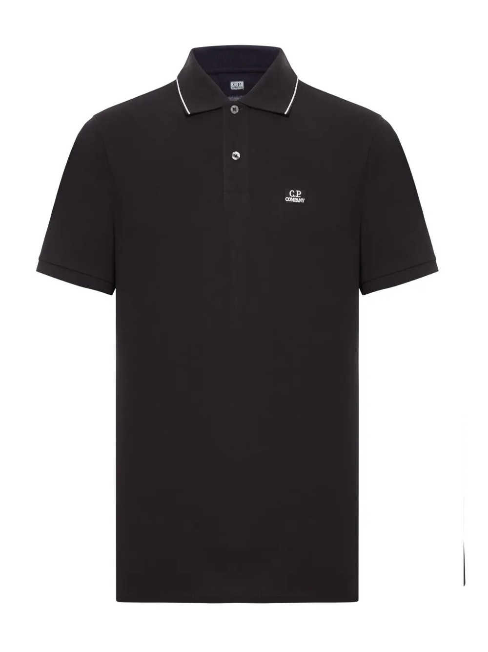Black cotton polo shirt by C.P. Company with short sleeves, polo collar, button placket, and logo detail.