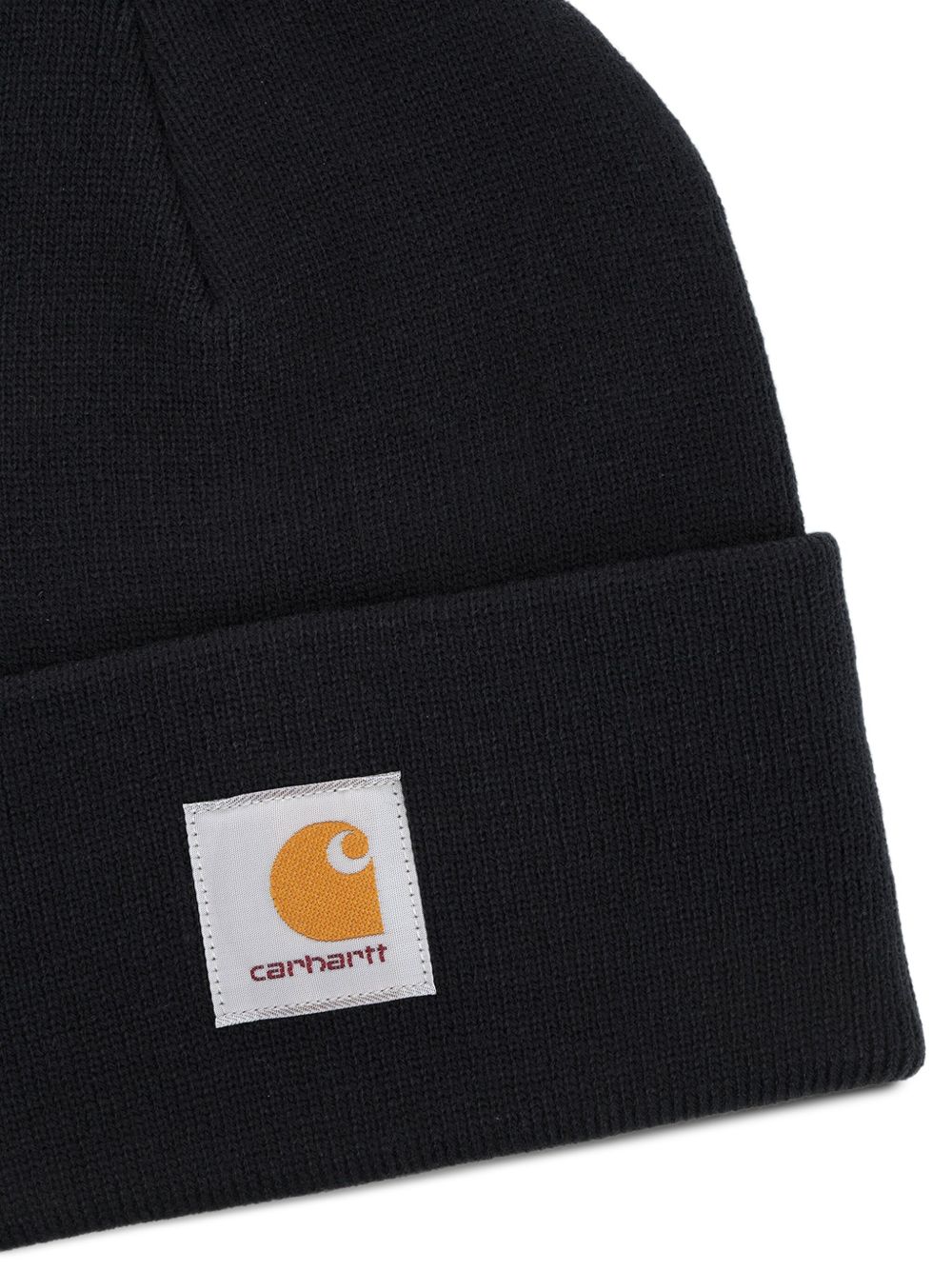 Navy Carhartt Wip cap with turn-up and logo on the front.