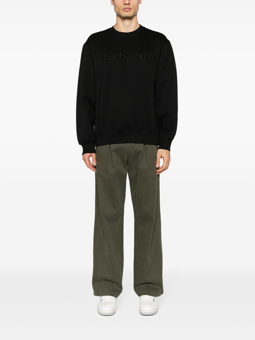 Black Carhartt Wip cotton sweatshirt with crew neck, long sleeves, front embroidery, elastic hem, and cuffs.