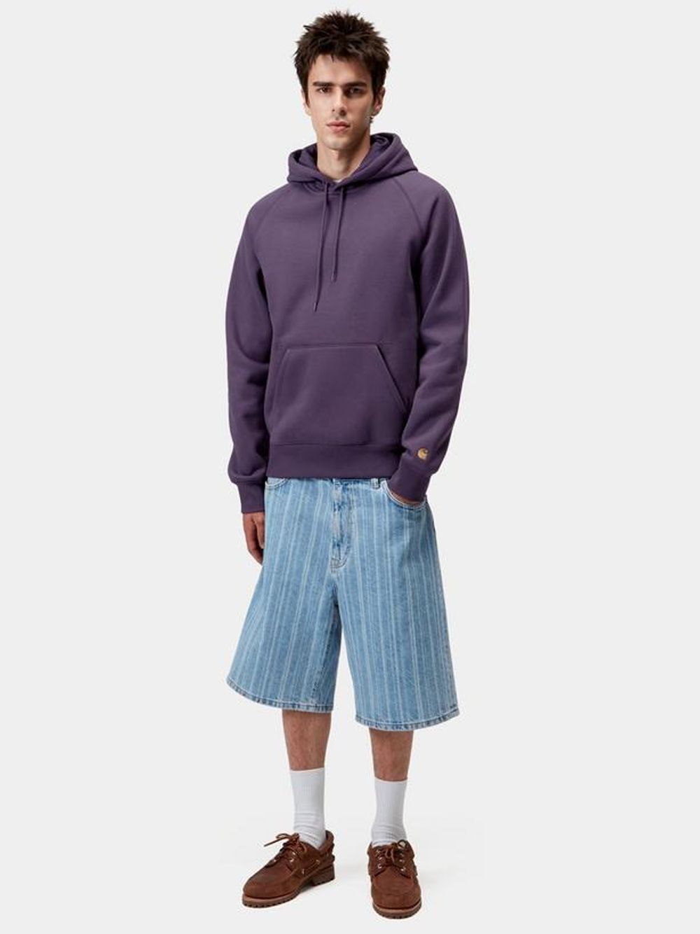 Carhartt Wip purple Hooded Chase sweatshirt in cotton with drawstring hood, long sleeves, embroidery on the sleeve, elasticated hem and cuffs.