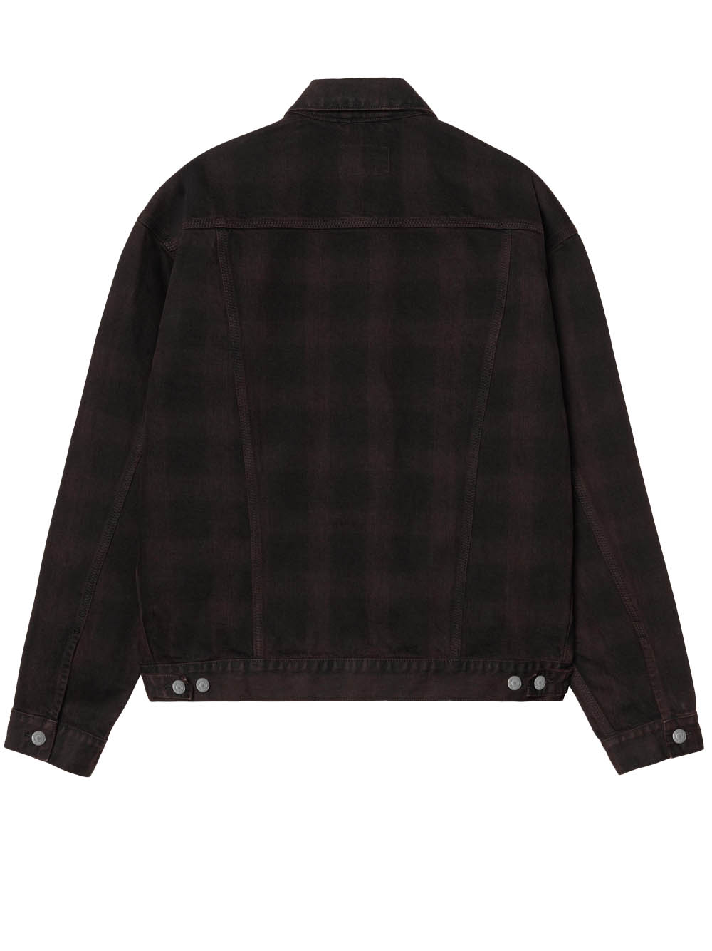 Black and rosewood Everson Trucker jacket by Carhartt Wip in cotton with classic collar, front button closure, front button pockets, and logo label.