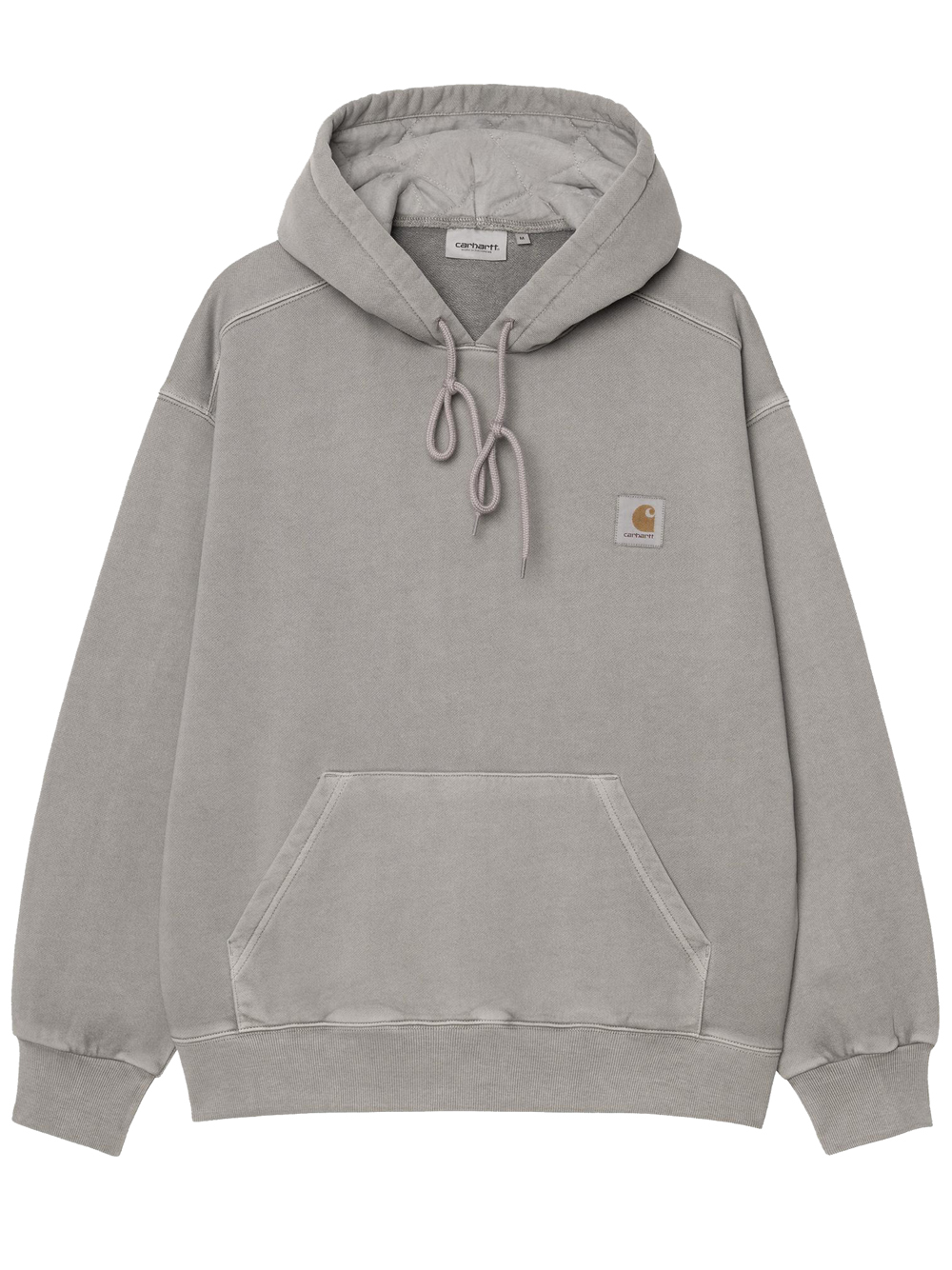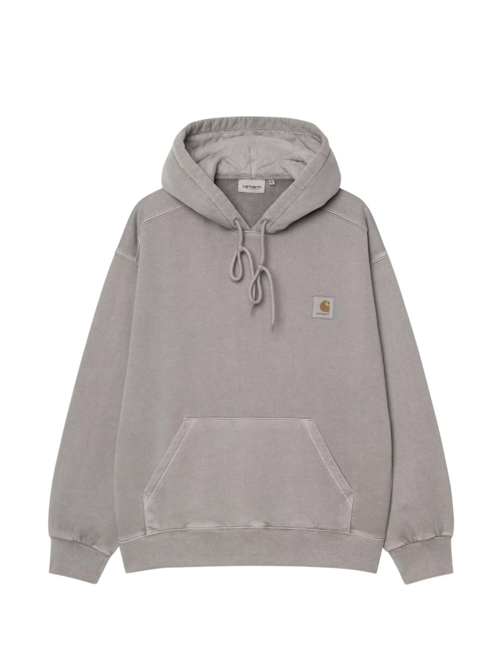 Carhartt Wip gray Hooded Nelson sweatshirt in cotton with drawstring hood, long sleeves, logo label, elastic hem, and cuffs.