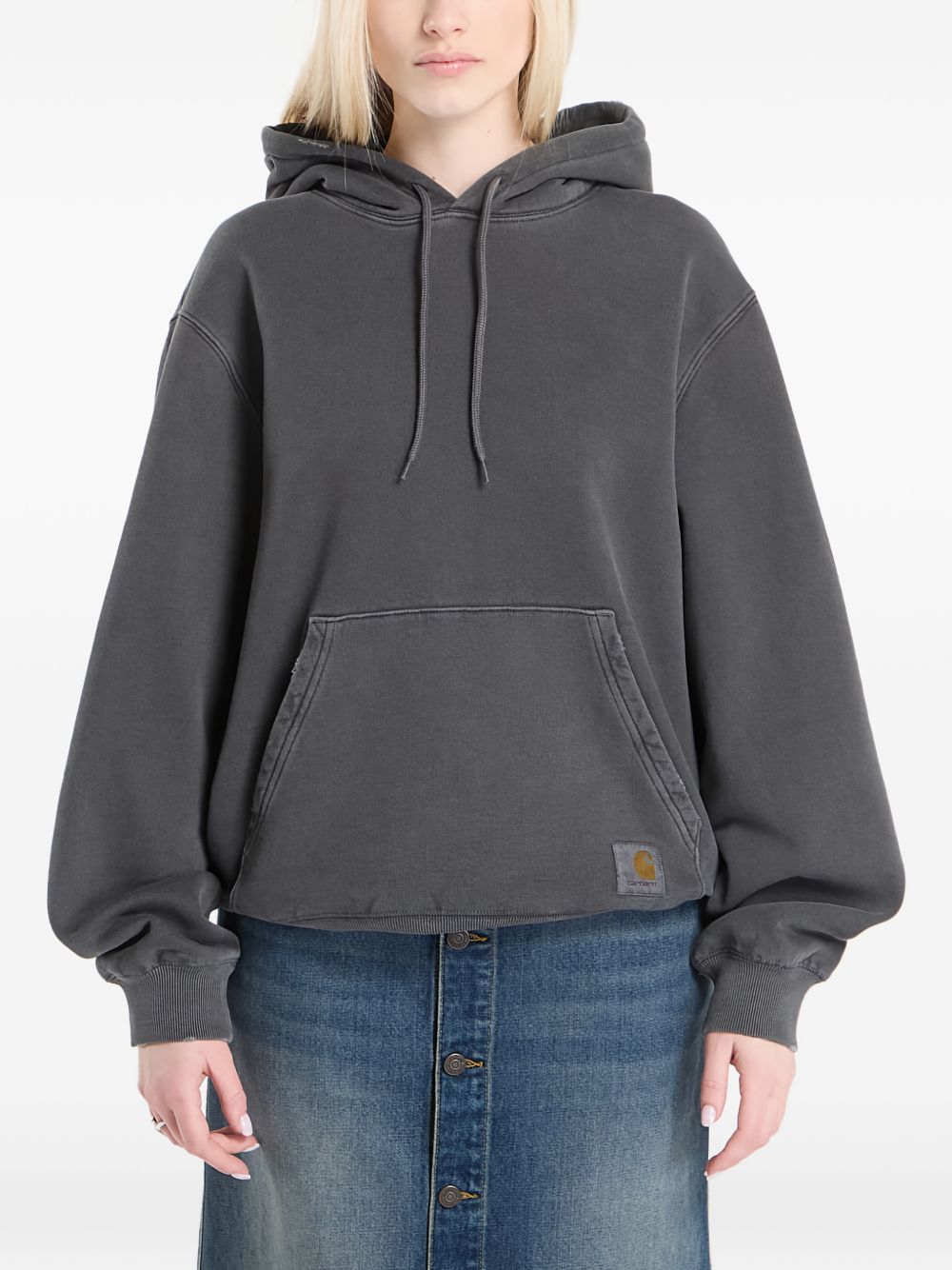 Carhartt Wip black Torion hooded sweatshirt in cotton with drawstring hood, long sleeves, logo label, elasticated hem and cuffs