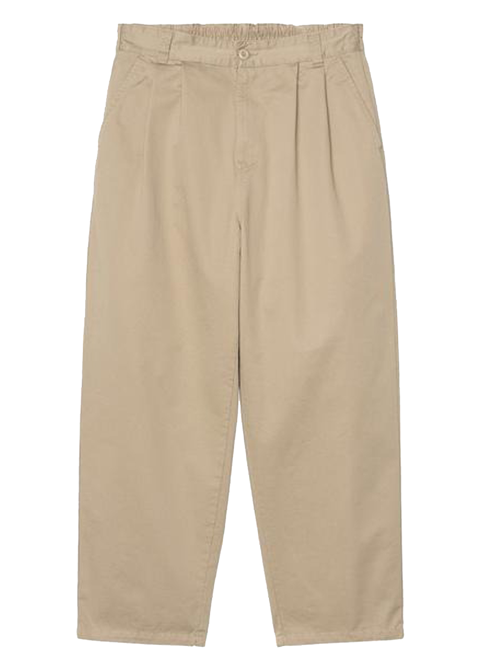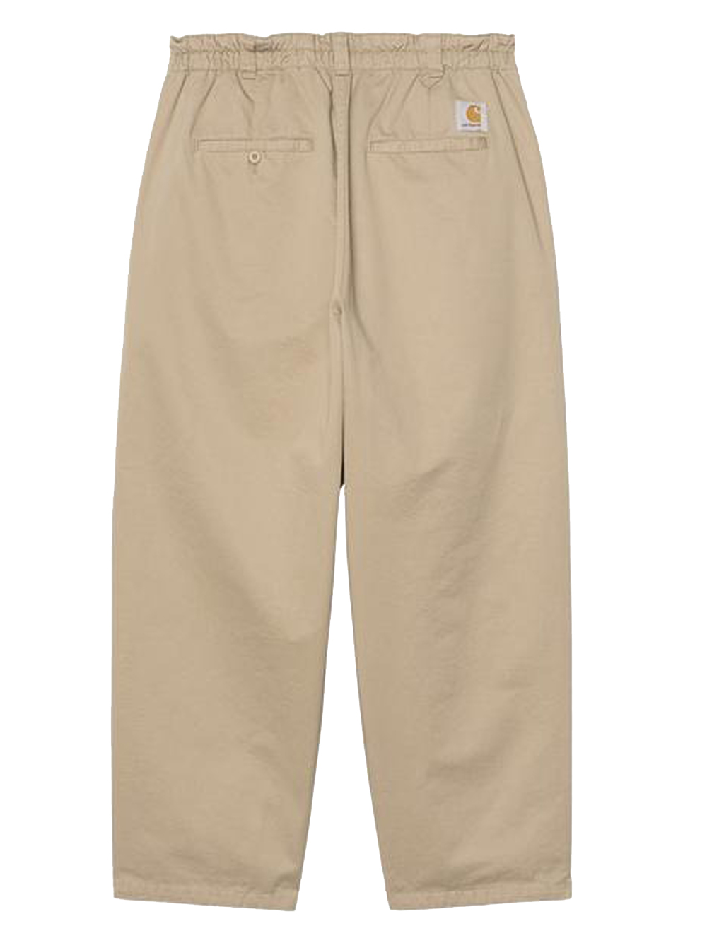 Carhartt Marv leaf beige cotton pants with elastic waistband with belt loops, front button and zip closure, side pockets, back pockets with button and logo label.