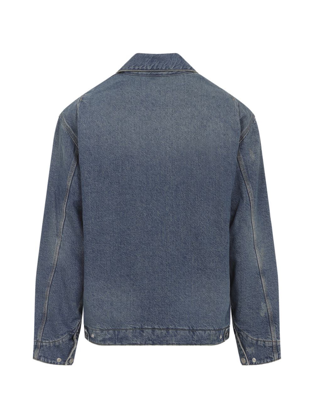 Carhartt Wip OG Detroit blue jacket in cotton with classic Cordura collar, front zip closure, side zip pockets, chest zip pocket, and logo appliqué.