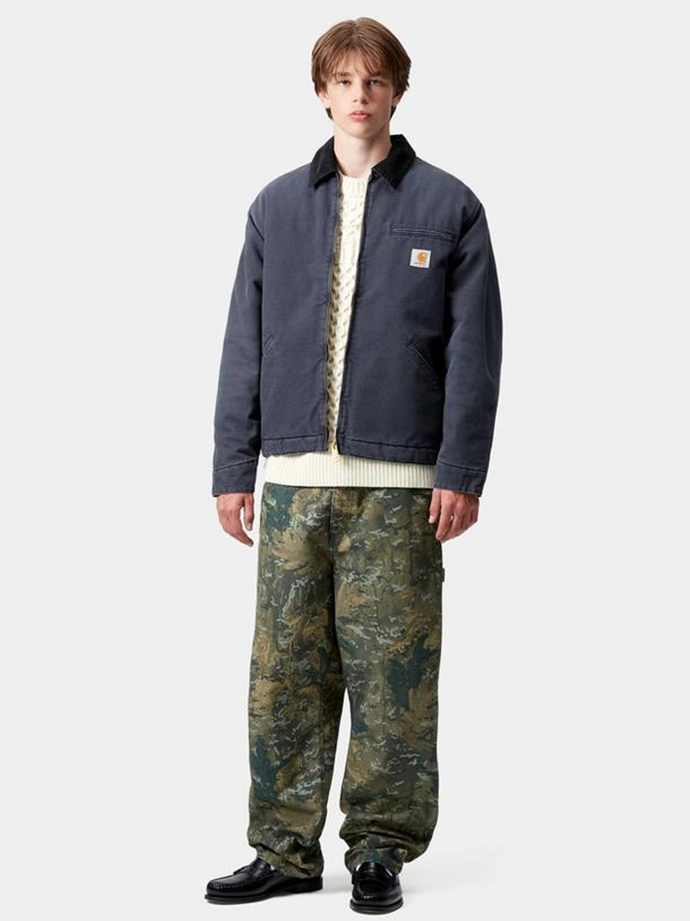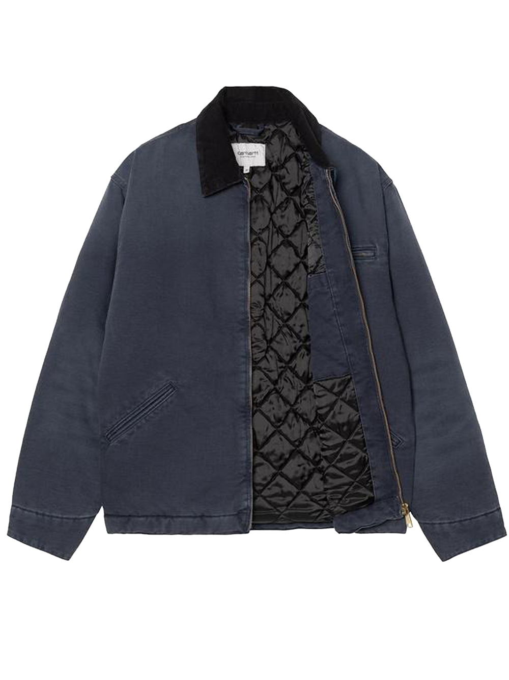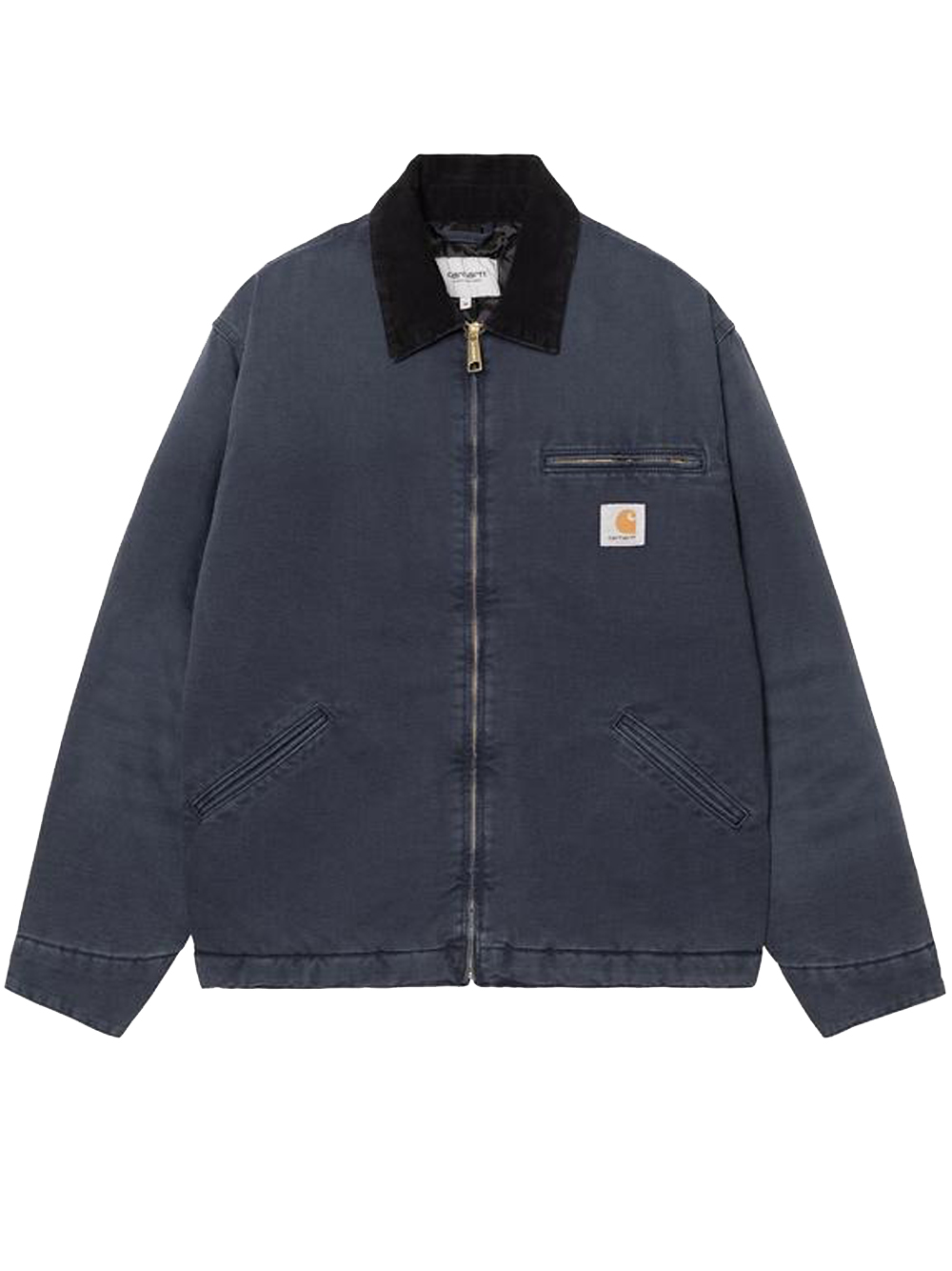 Carhartt Wip brown OG Detroit jacket in cotton with classic Cordura collar, front zip closure, side zip pockets, chest zip pocket, and logo appliqué