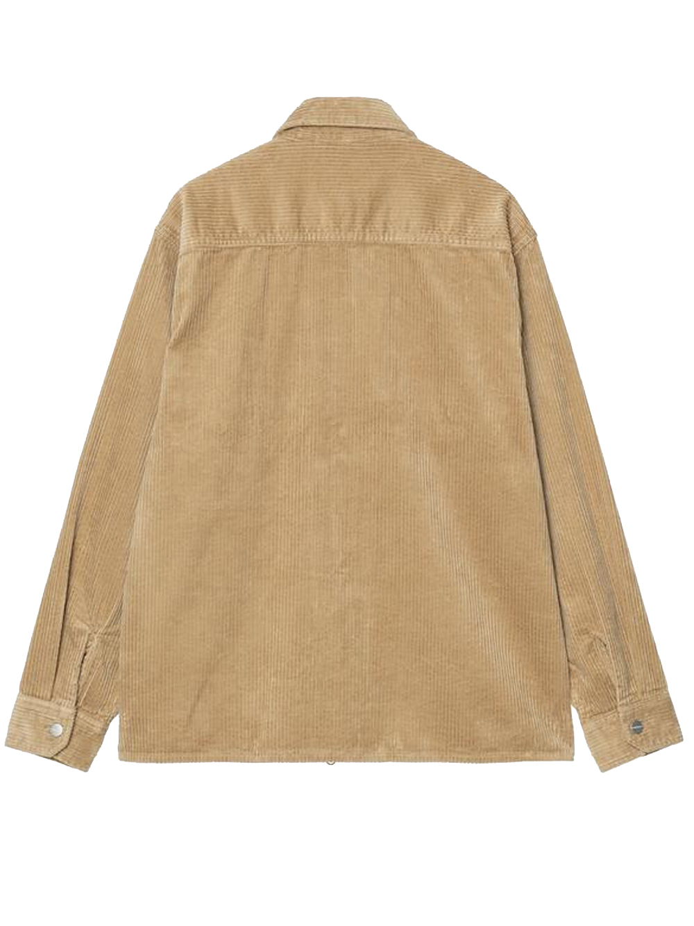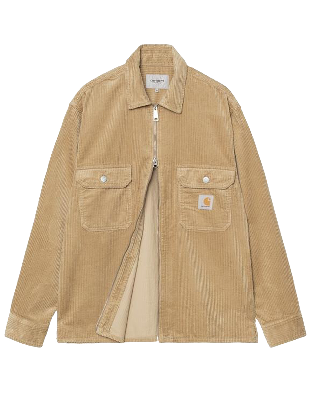 Reynold beige shirt jacket by Carhartt Wip in cotton with classic Cordura collar, front zip closure, front pockets, and logo appliqué.