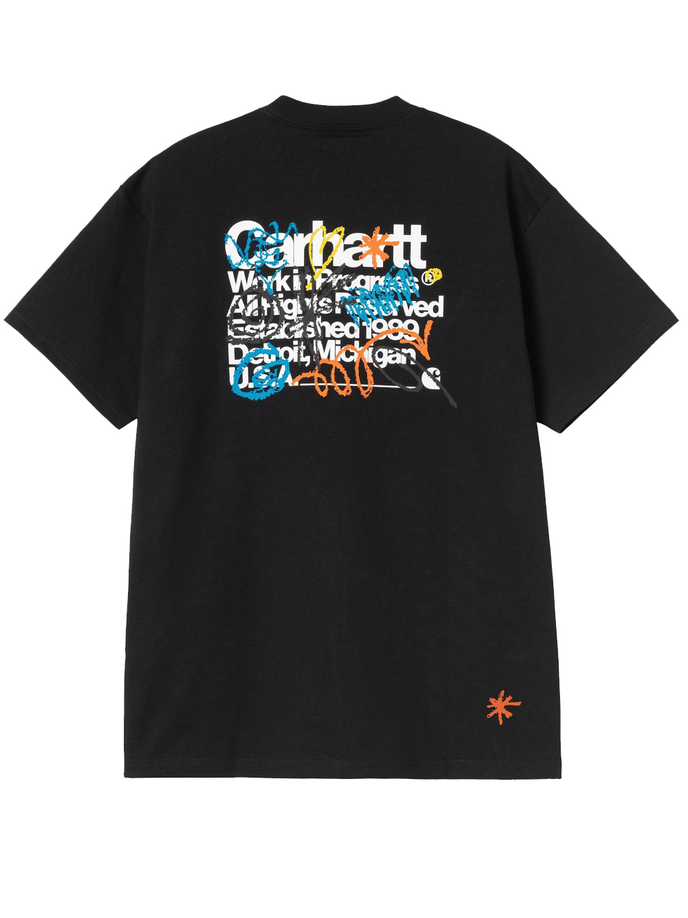 Carhartt Wip black cotton Primary T-shirt with crew neck, front and back print, and straight hem.