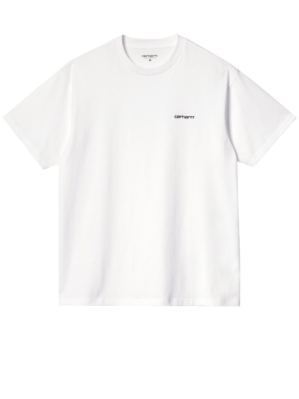 White Link Script T-shirt by Carhartt Wip in cotton with crew neck, logo on the chest, and straight hem.